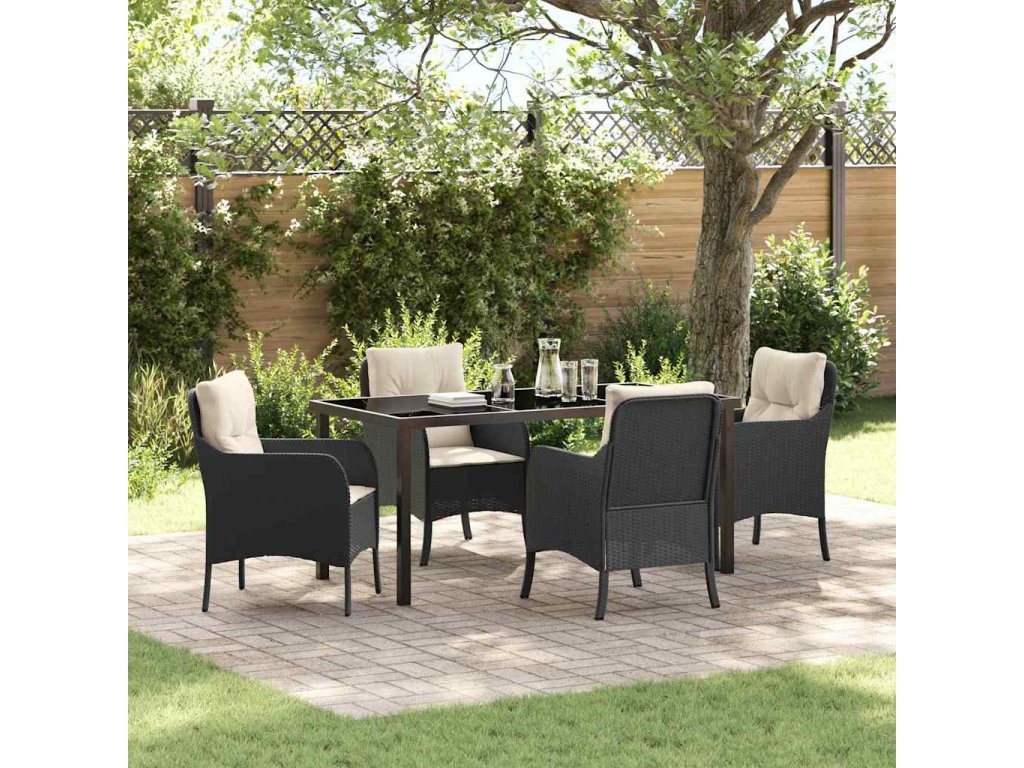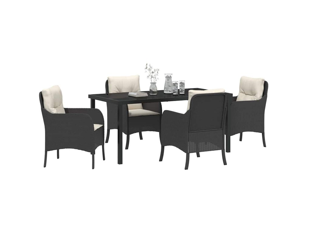 Zahradní jídelní souprava s polštářem 5 pcs Černá Poly ratan 3380144