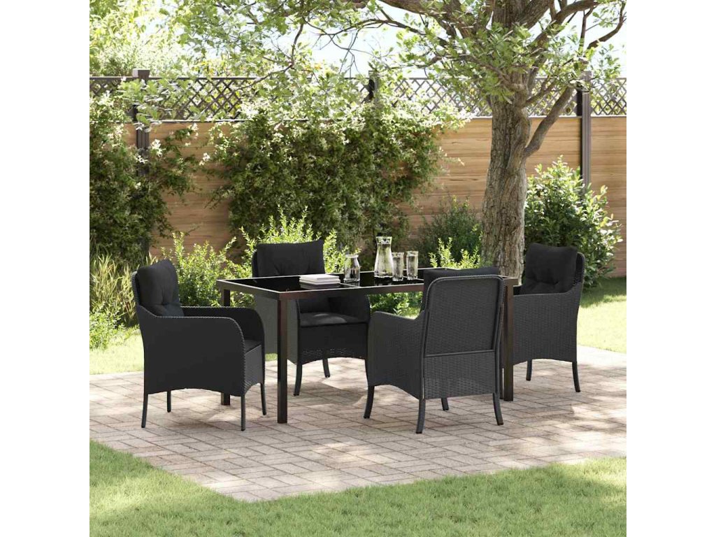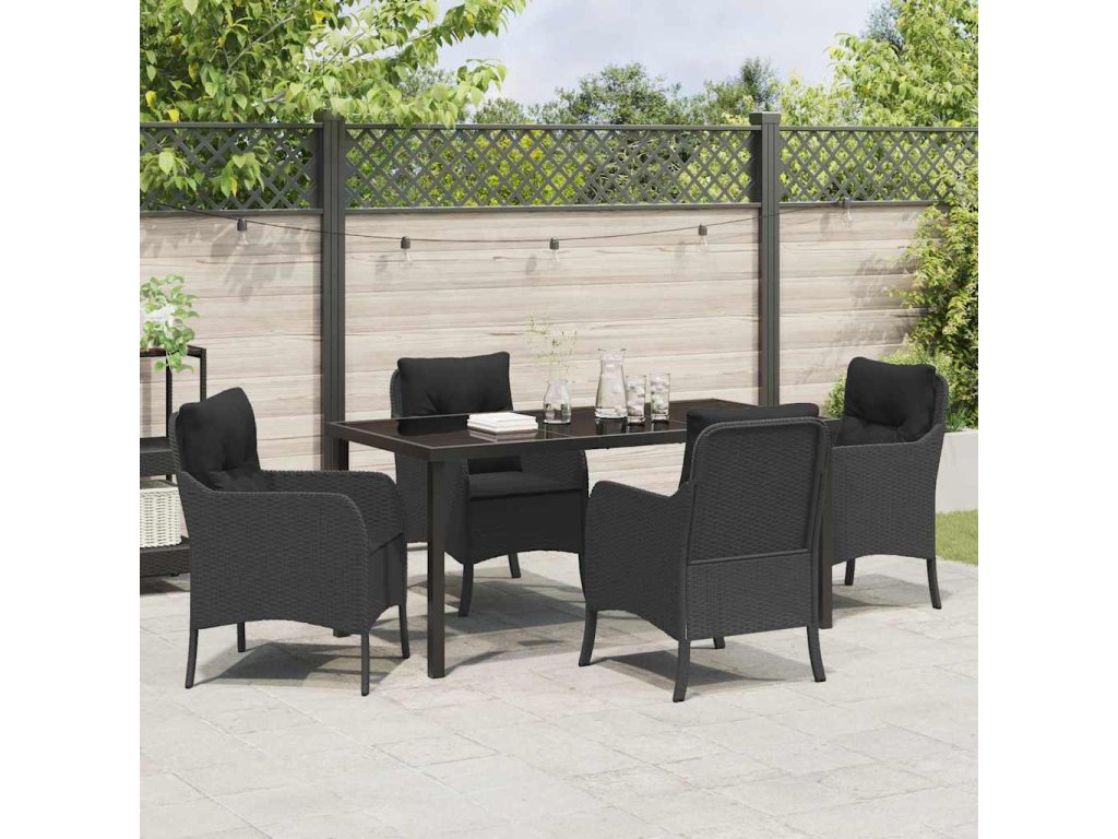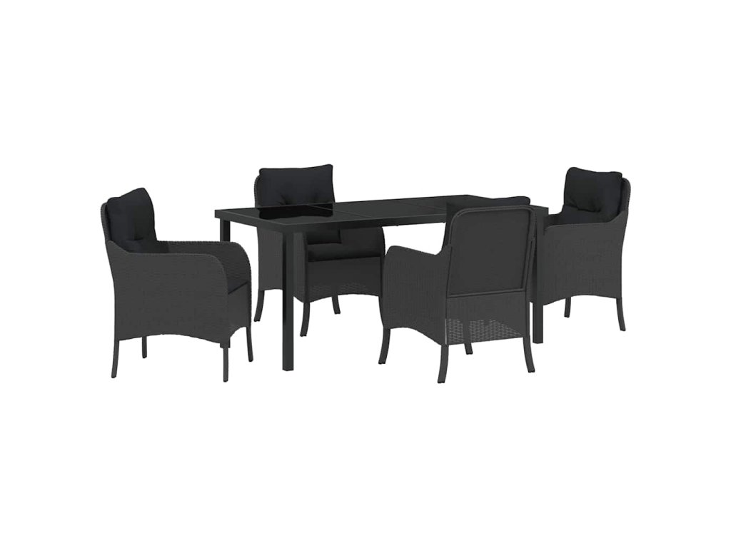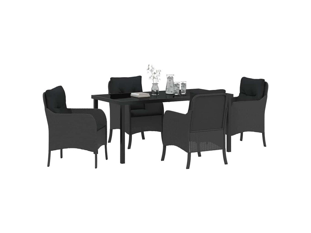 Zahradní jídelní souprava s polštářem 5 pcs Černá Poly ratan 3380151