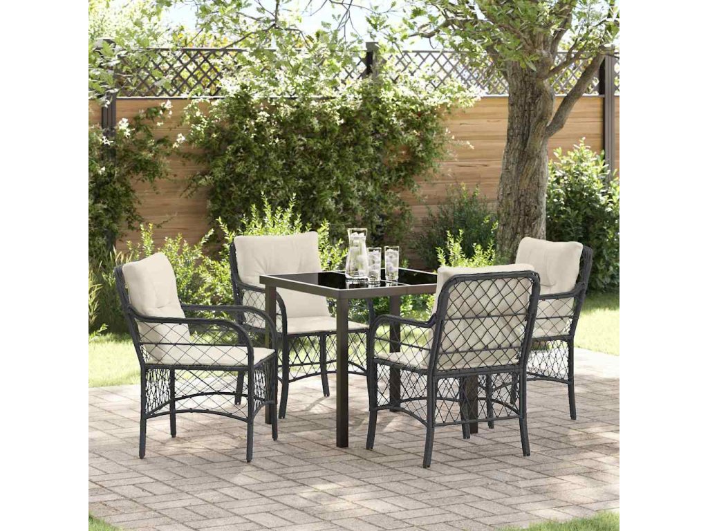 Zahradní jídelní souprava s polštářem 5 pcs Černá Poly ratan 3380198