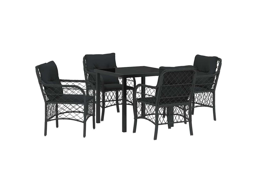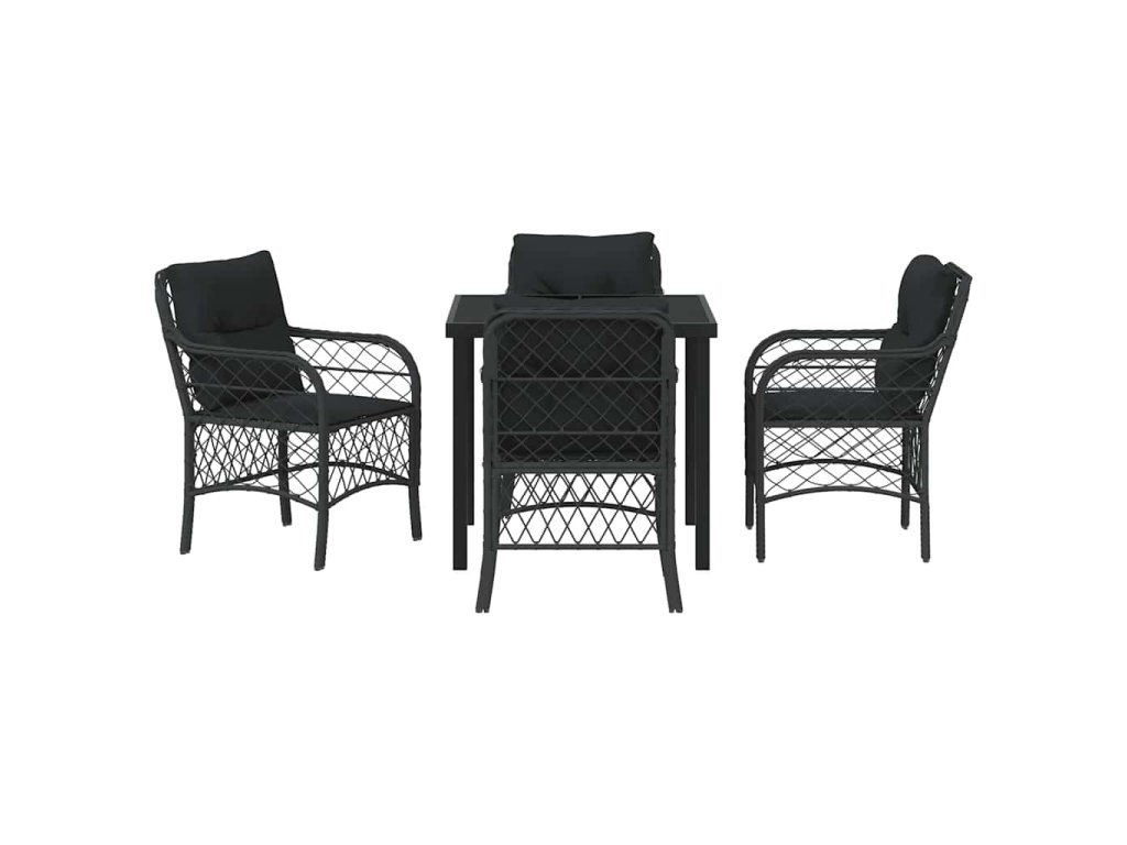 Zahradní jídelní souprava s polštářem 5 pcs Černá Poly ratan 3380205