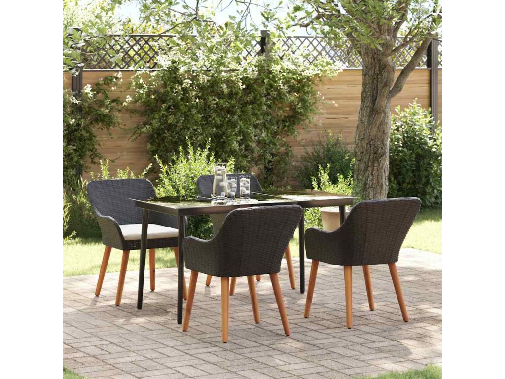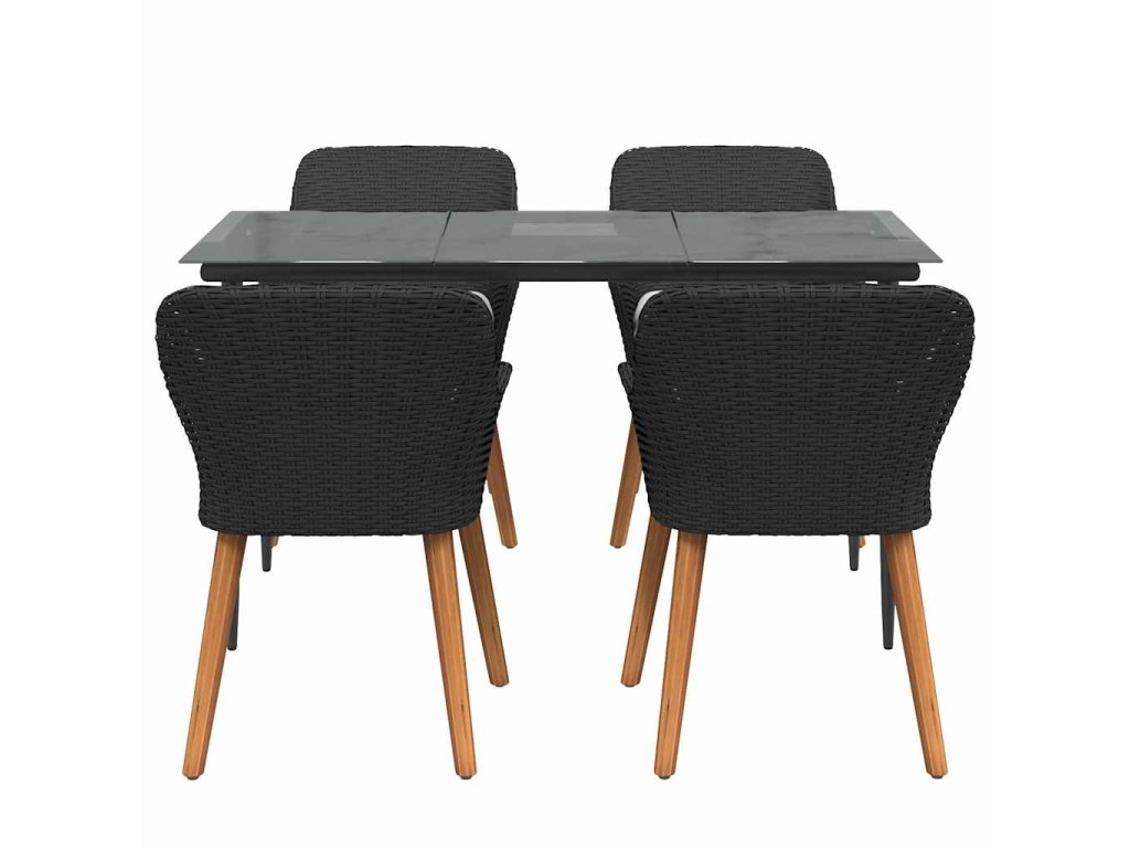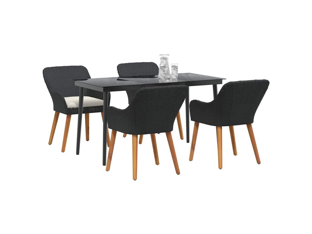 Zahradní jídelní souprava s polštářem 5 pcs Černá polyratan 3261665