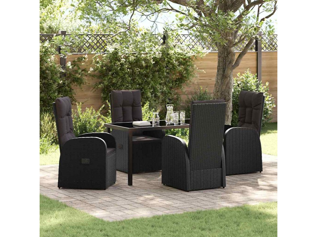 Zahradní jídelní souprava s polštářem 5 pcs Černá polyratan 3379508