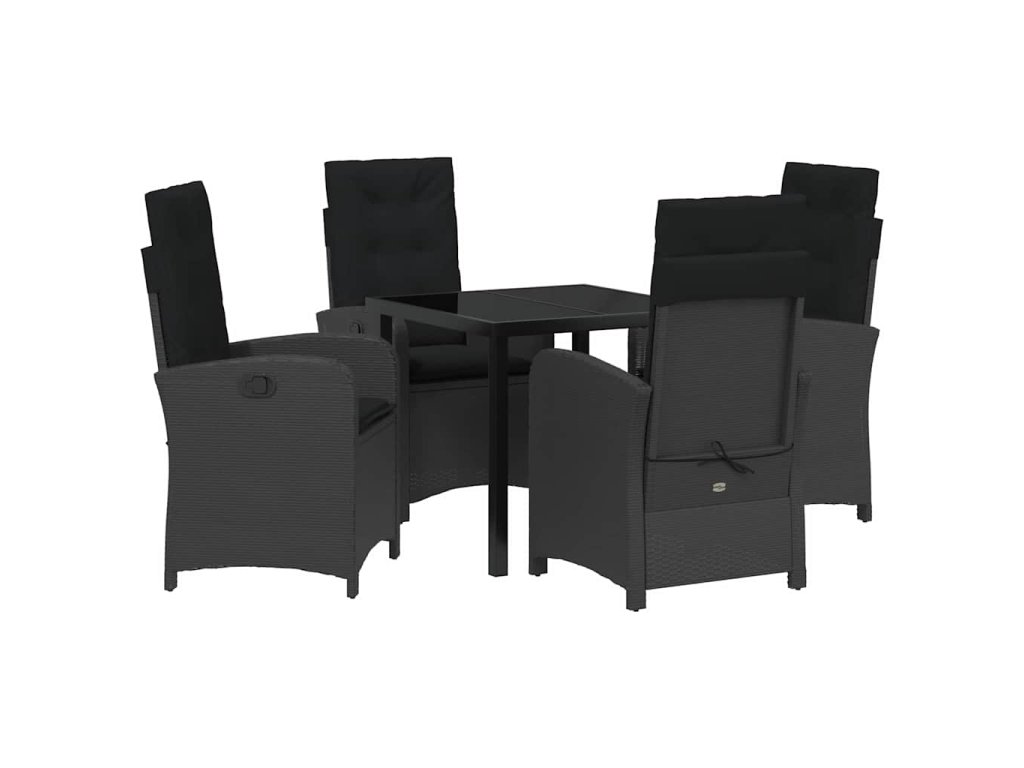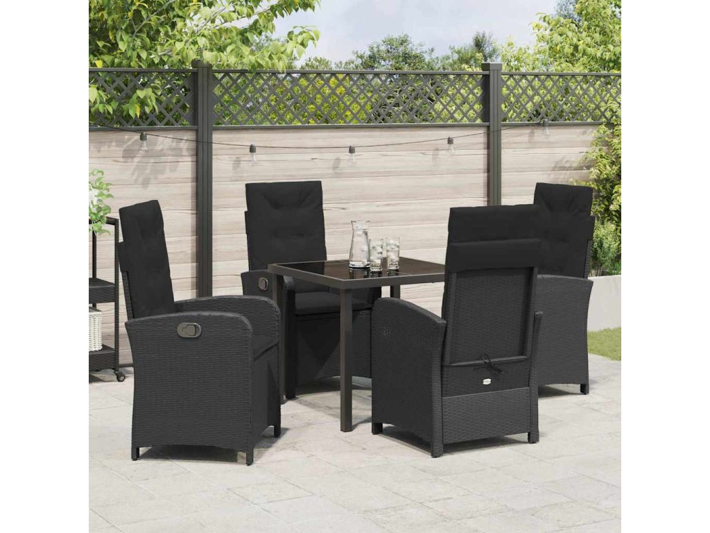 Zahradní jídelní souprava s polštářem 5 pcs Černá polyratan 3380261