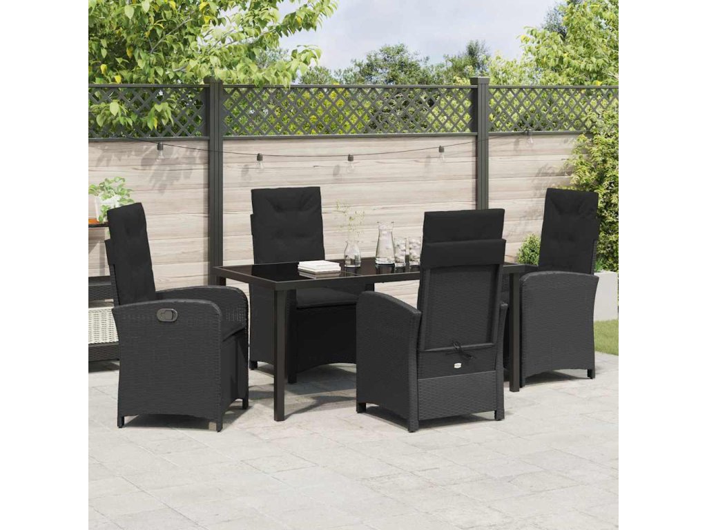 Zahradní jídelní souprava s polštářem 5 pcs Černá polyratan 3380263