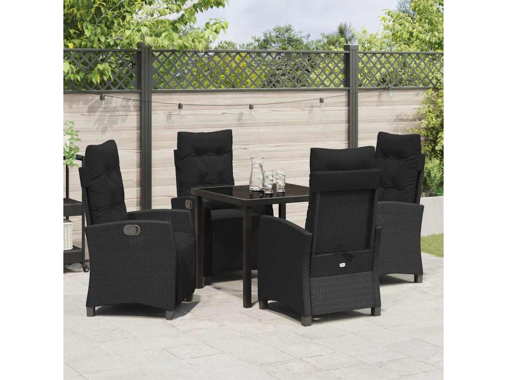 Zahradní jídelní souprava s polštářem 5 pcs Černá polyratan 3380422