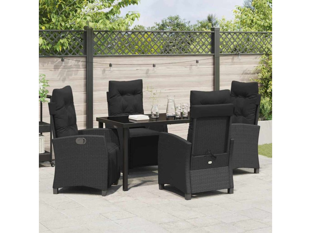 Zahradní jídelní souprava s polštářem 5 pcs Černá polyratan 3380423