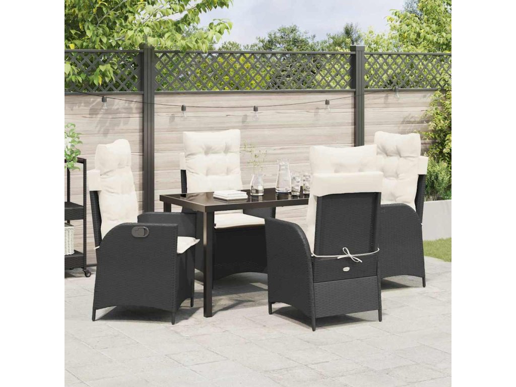Zahradní jídelní souprava s polštářem 5 pcs Černá polyratan 3380479