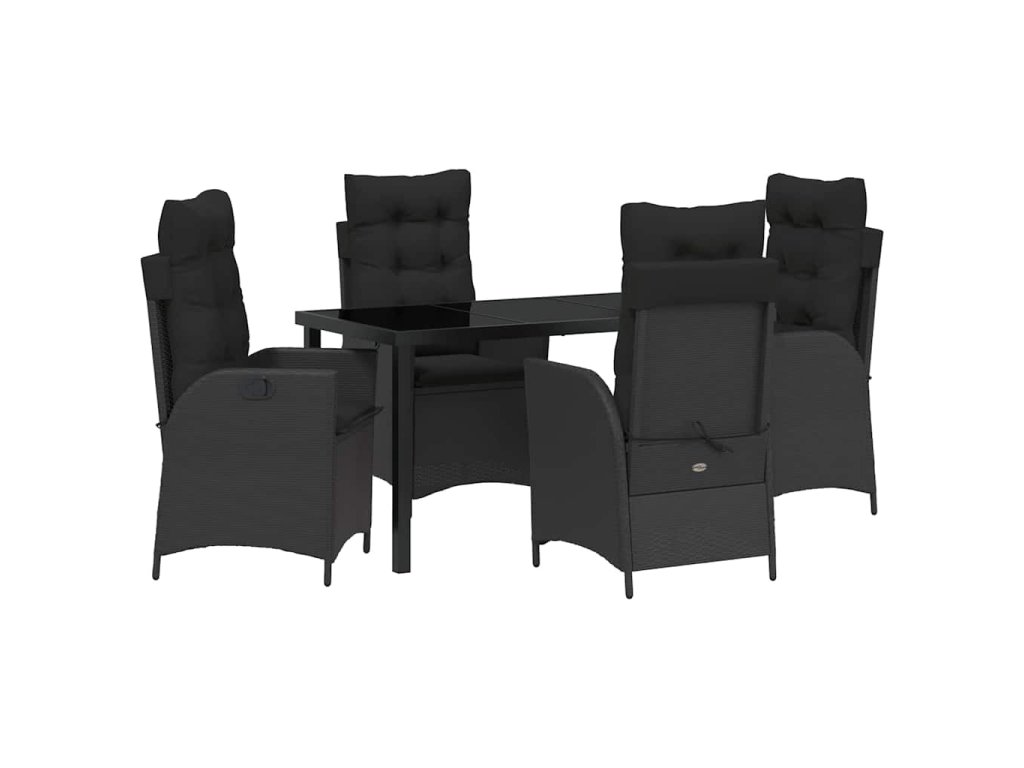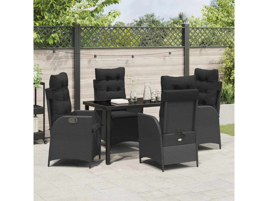 Zahradní jídelní souprava s polštářem 5 pcs Černá polyratan 3380486