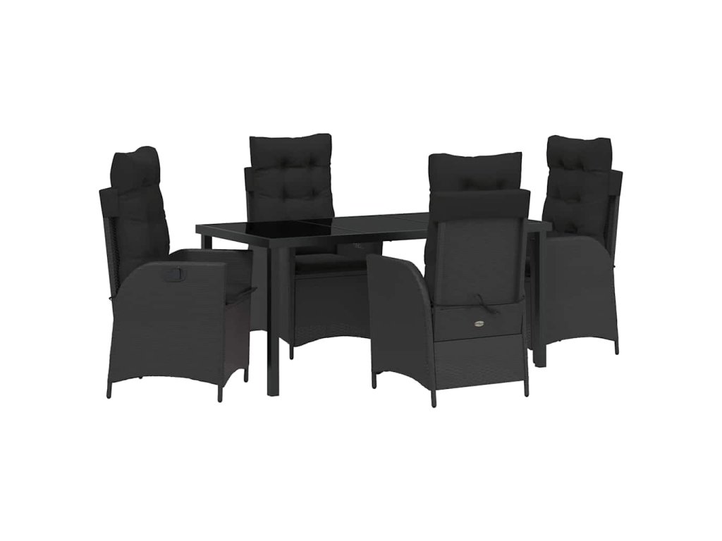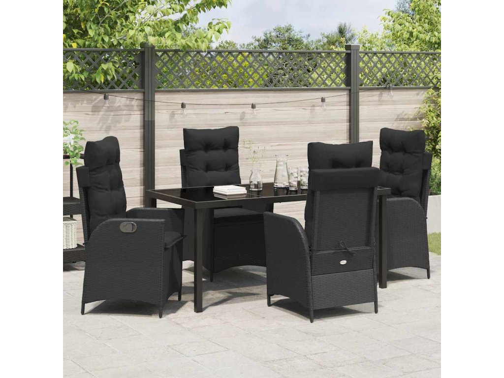 Zahradní jídelní souprava s polštářem 5 pcs Černá polyratan 3380487