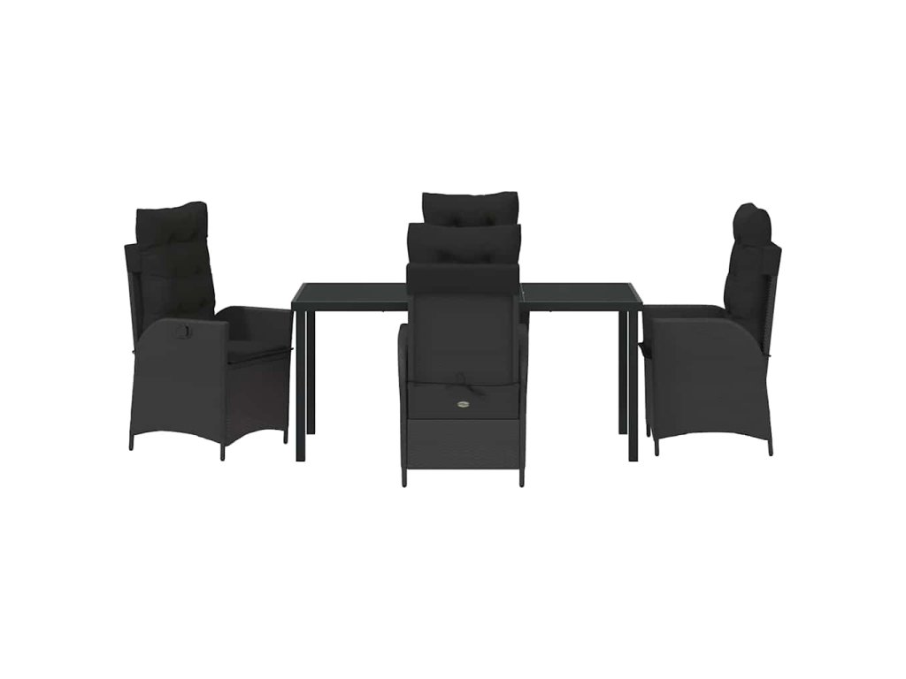 Kvalitní materiály: Set je hlavně z polyratanu, takže je odolný a vypadá skvěle. Elegantní skleněný stůl se krásně doplňuje s polyratanem a dodává mu jemný styl. Stabilní konstrukce: Ocelový rám a opěrky zaručují pevnost a dlouhou životnost. Pohodlné polstrování zvyšuje komfort, zatímco moderní skleněná deska dodává na stylovosti. Flexibilita sezení: Set má vícepolohová opěradla, což umožňuje pohodlně nastavit polohu podle potřeby. Skvělé pro stolování i relaxaci. Univerzální využití: Oceníte ho na zahradě i na terase, ideální pro různé společenské akce nebo klidné večery. Jeho moderní elegance se hodí do každého interiéru. Snadná údržba: Doporučuje se používat kryt na venkovní nábytek, když set nepoužíváte, aby se ochránil před nepříznivým počasím. Tento jednoduchý krok prodlouží jeho životnost a udrží ho krásný i po letech.- Barva: Černá