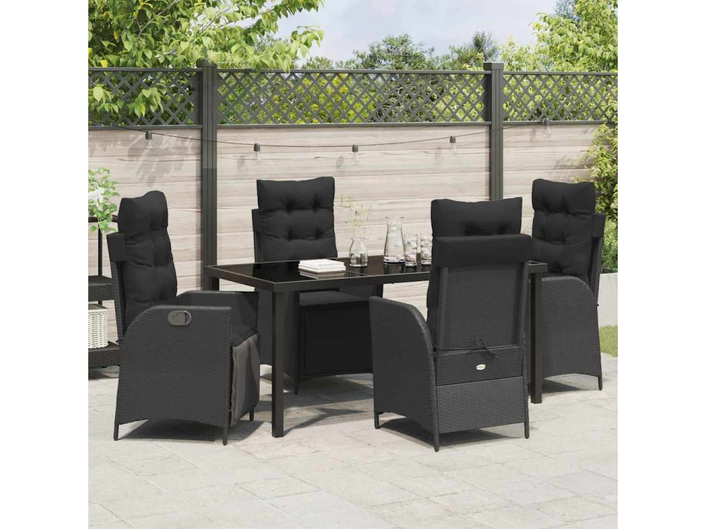 Zahradní jídelní souprava s polštářem 5 pcs Černá polyratan 3380536
