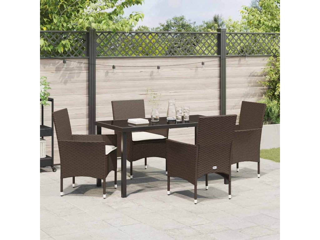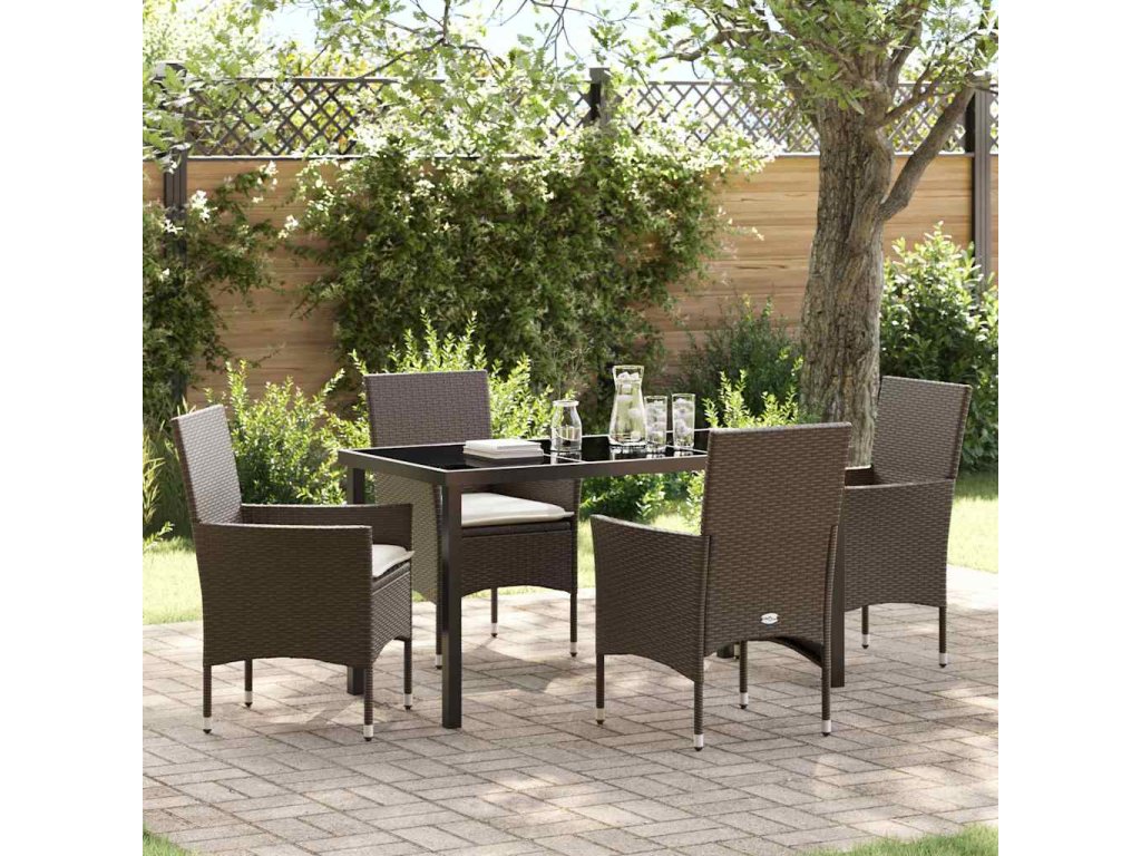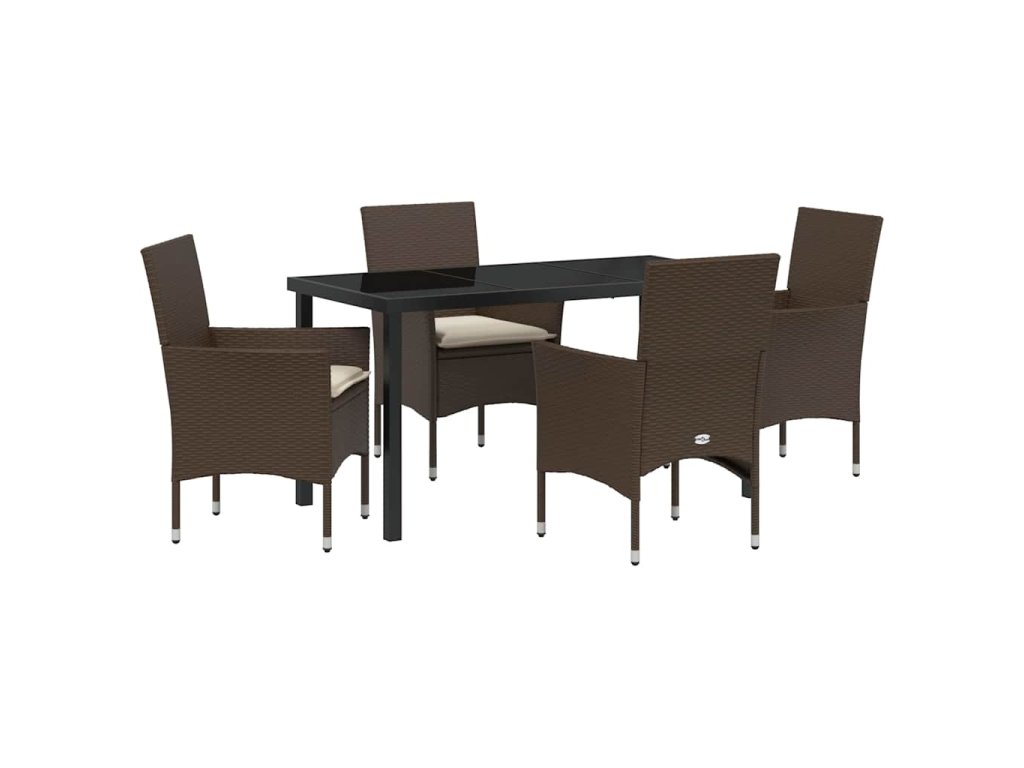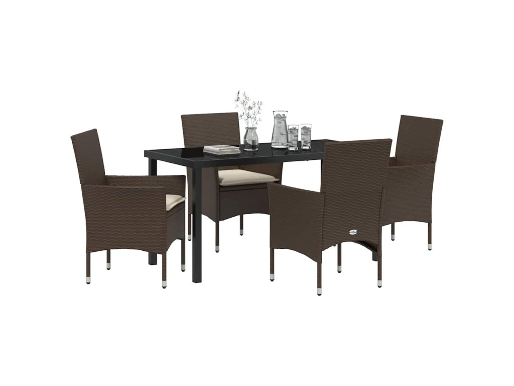Zahradní jídelní souprava s polštářem 5 pcs Hnědá Poly ratan 3379781