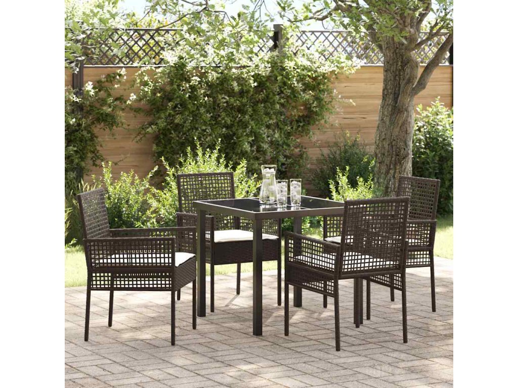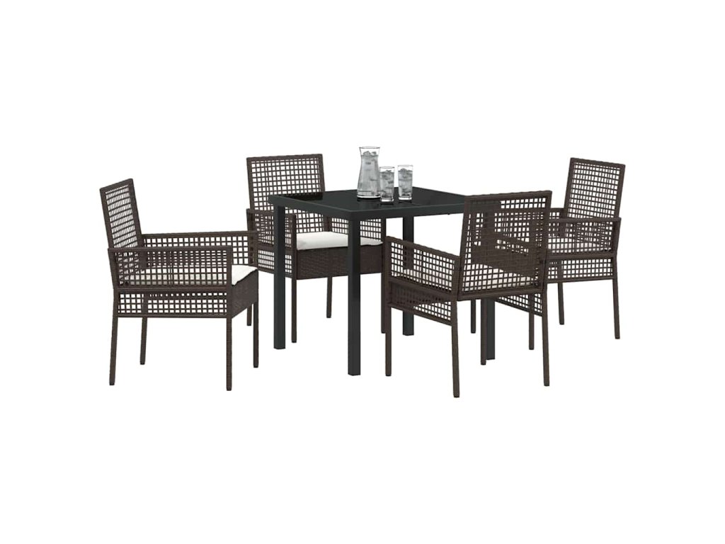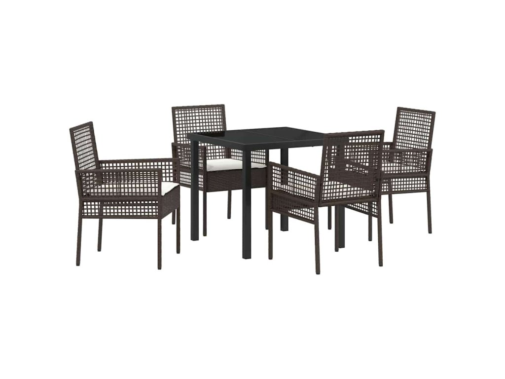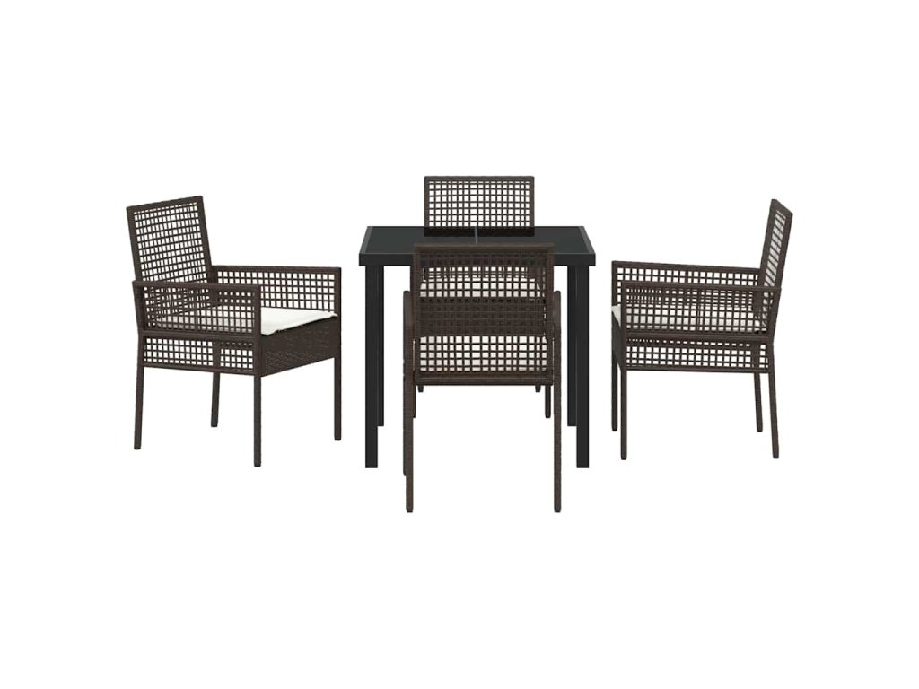 Zahradní jídelní souprava s polštářem 5 pcs Hnědá Poly ratan 3379871