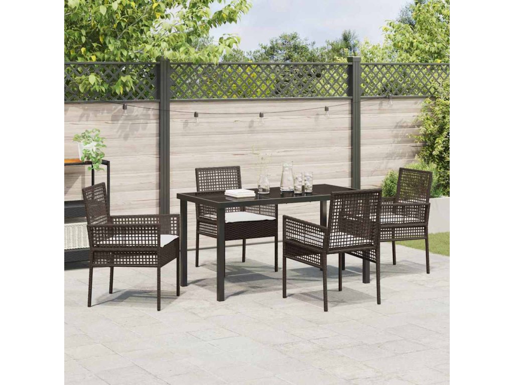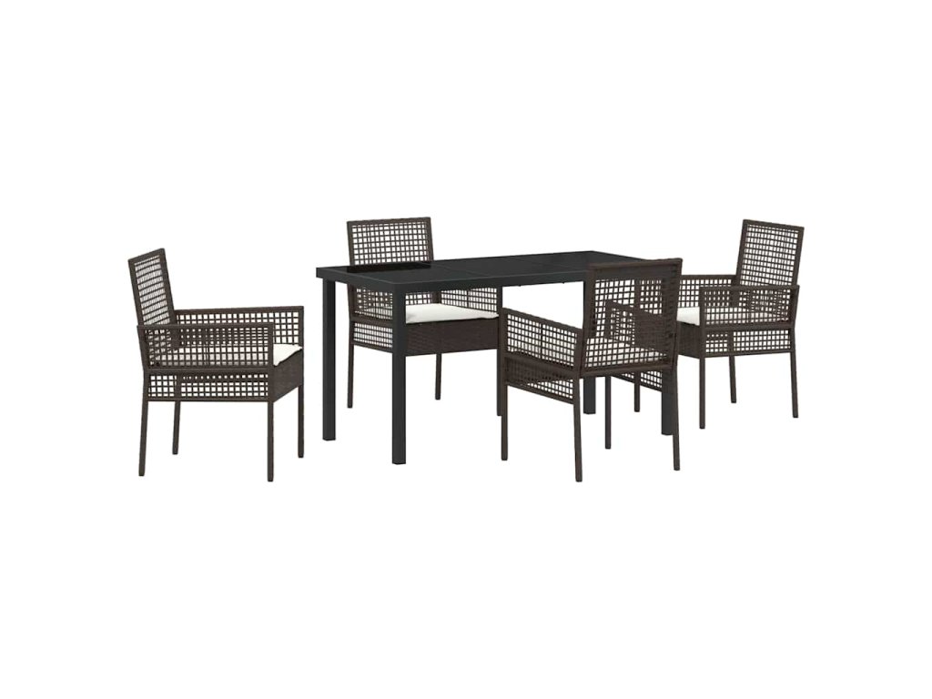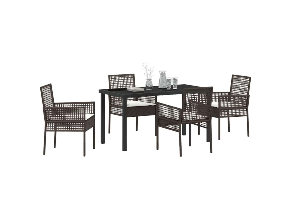Zahradní jídelní souprava s polštářem 5 pcs Hnědá Poly ratan 3379872