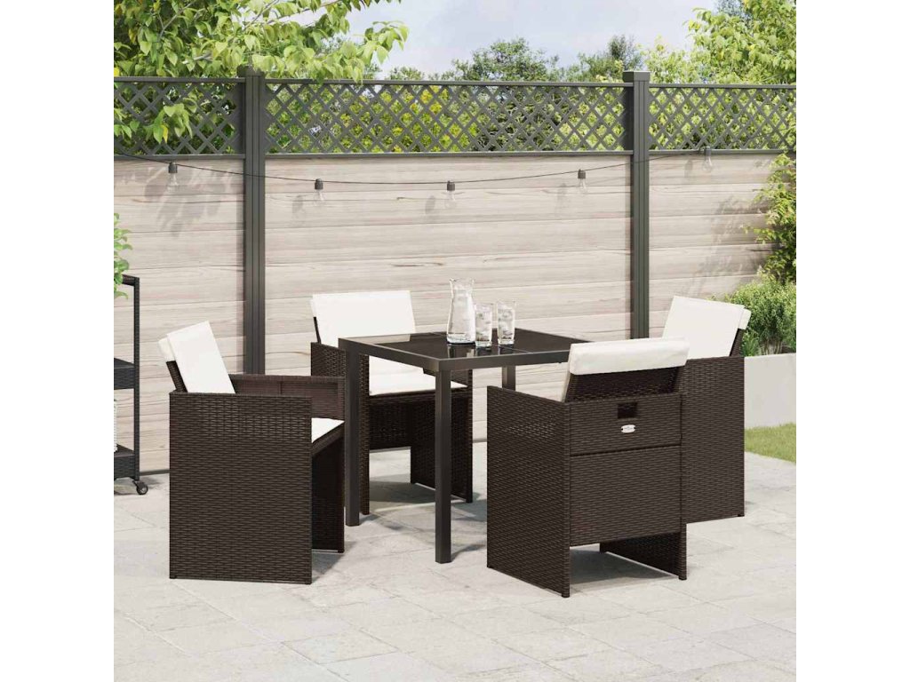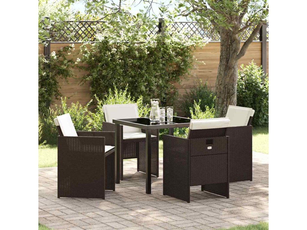 Zahradní jídelní souprava s polštářem 5 pcs Hnědá Poly ratan 3379952