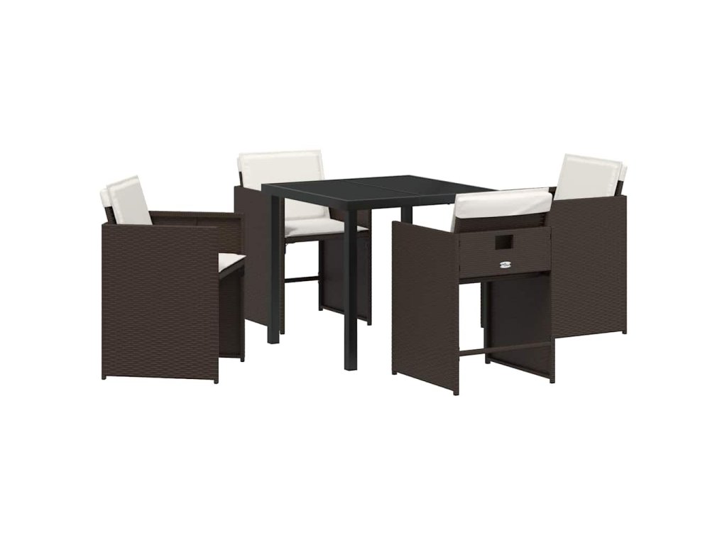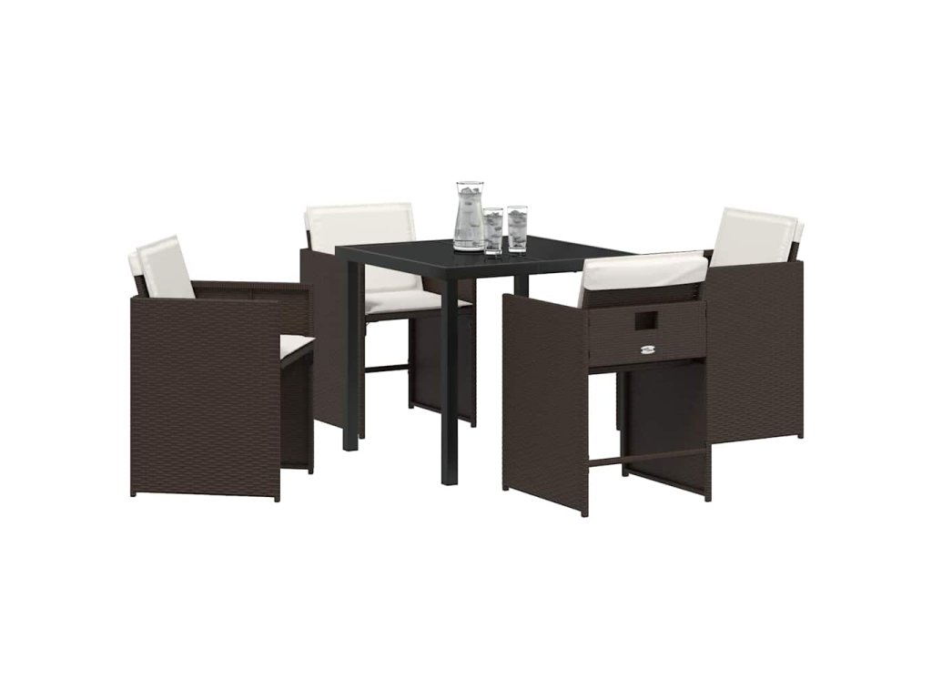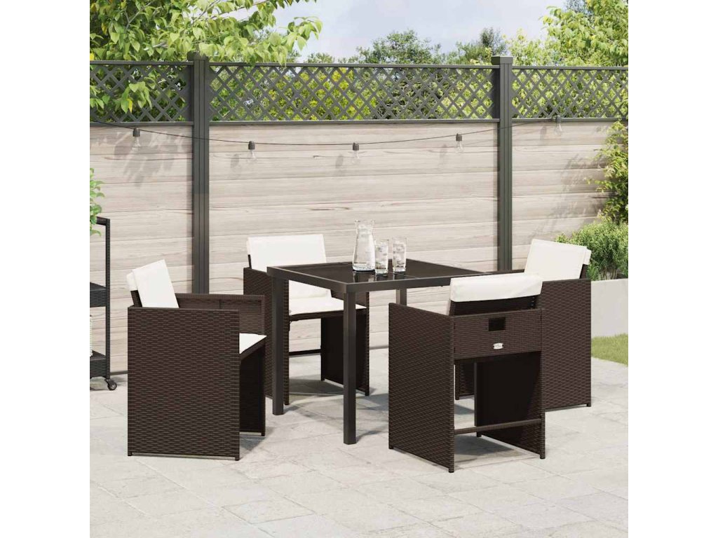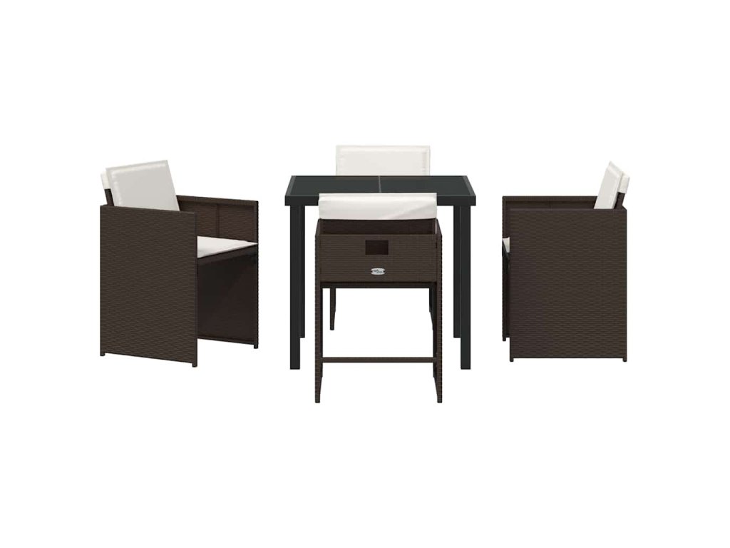 Zahradní jídelní souprava s polštářem 5 pcs Hnědá Poly ratan 3379984