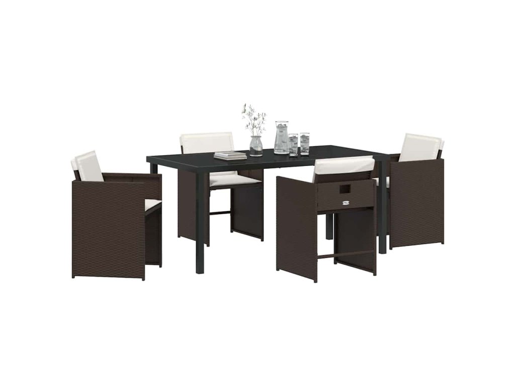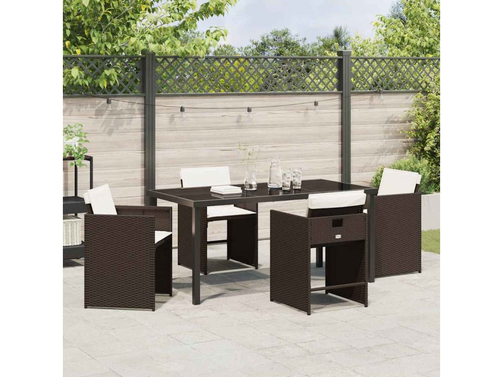 Zahradní jídelní souprava s polštářem 5 pcs Hnědá Poly ratan 3379986