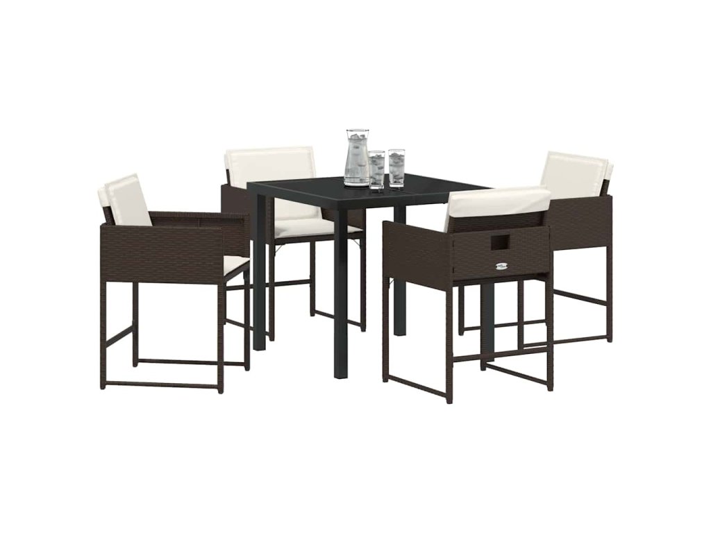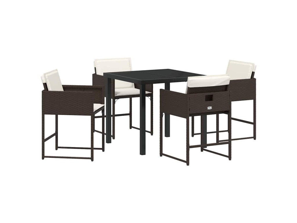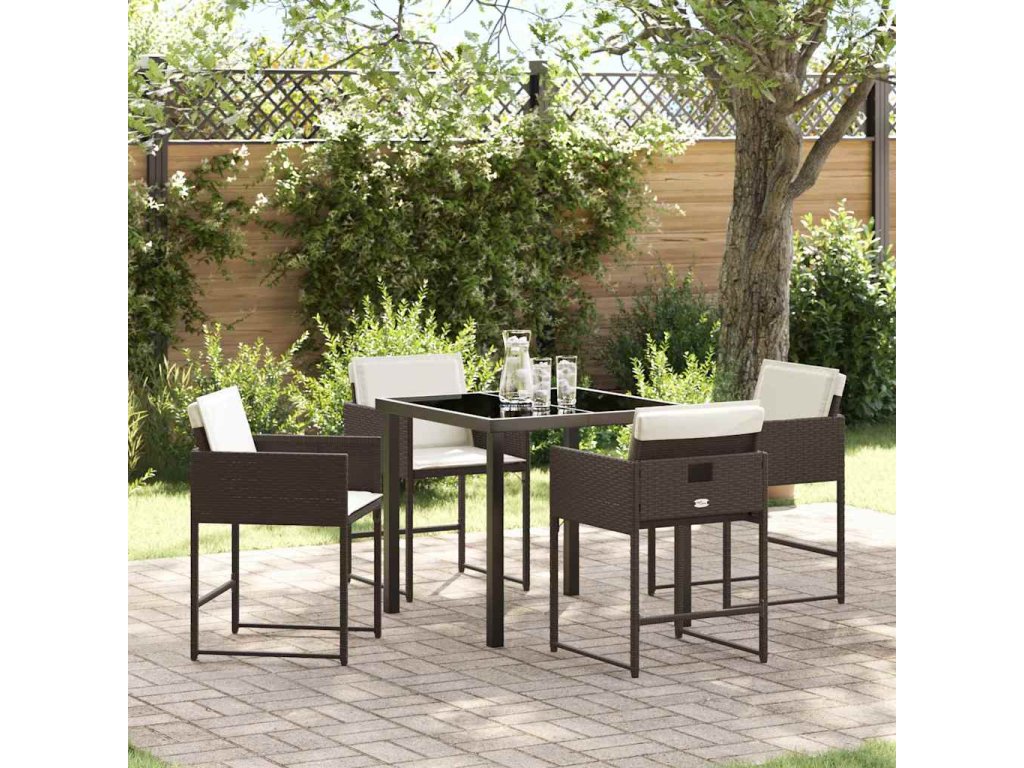 Zahradní jídelní souprava s polštářem 5 pcs Hnědá Poly ratan 3380016