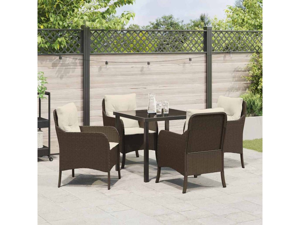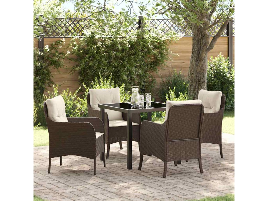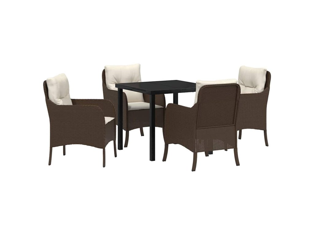 Zahradní jídelní souprava s polštářem 5 pcs Hnědá Poly ratan 3380156