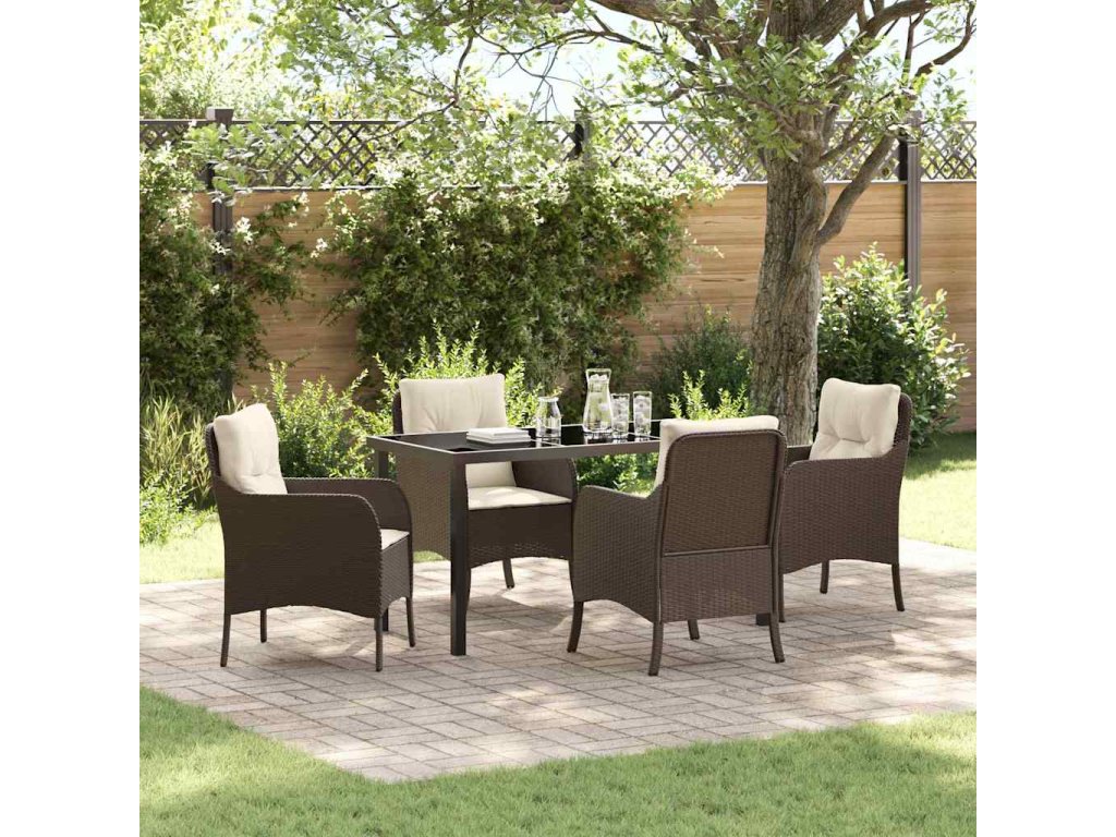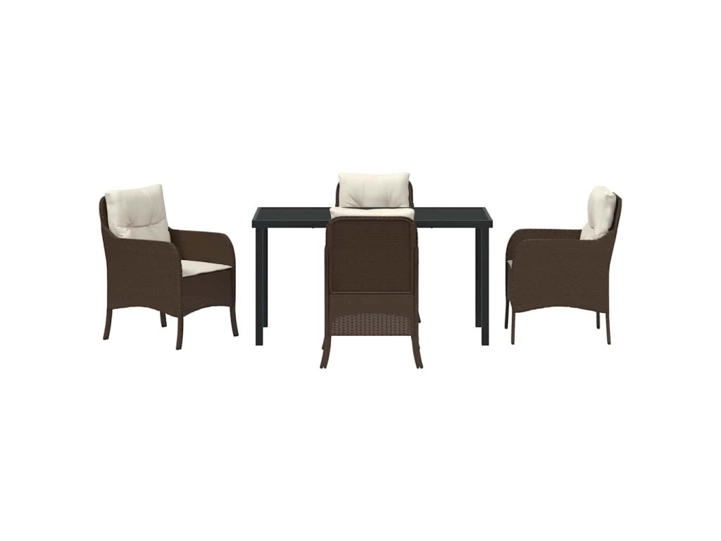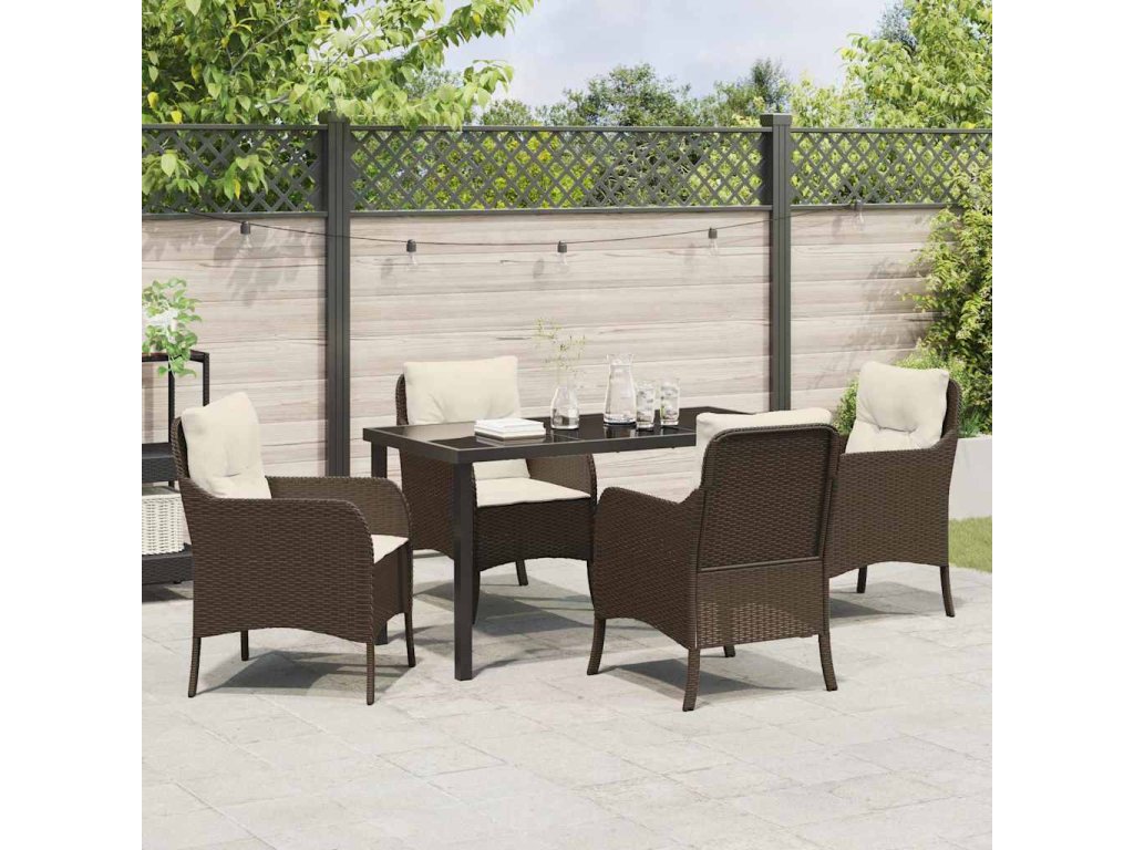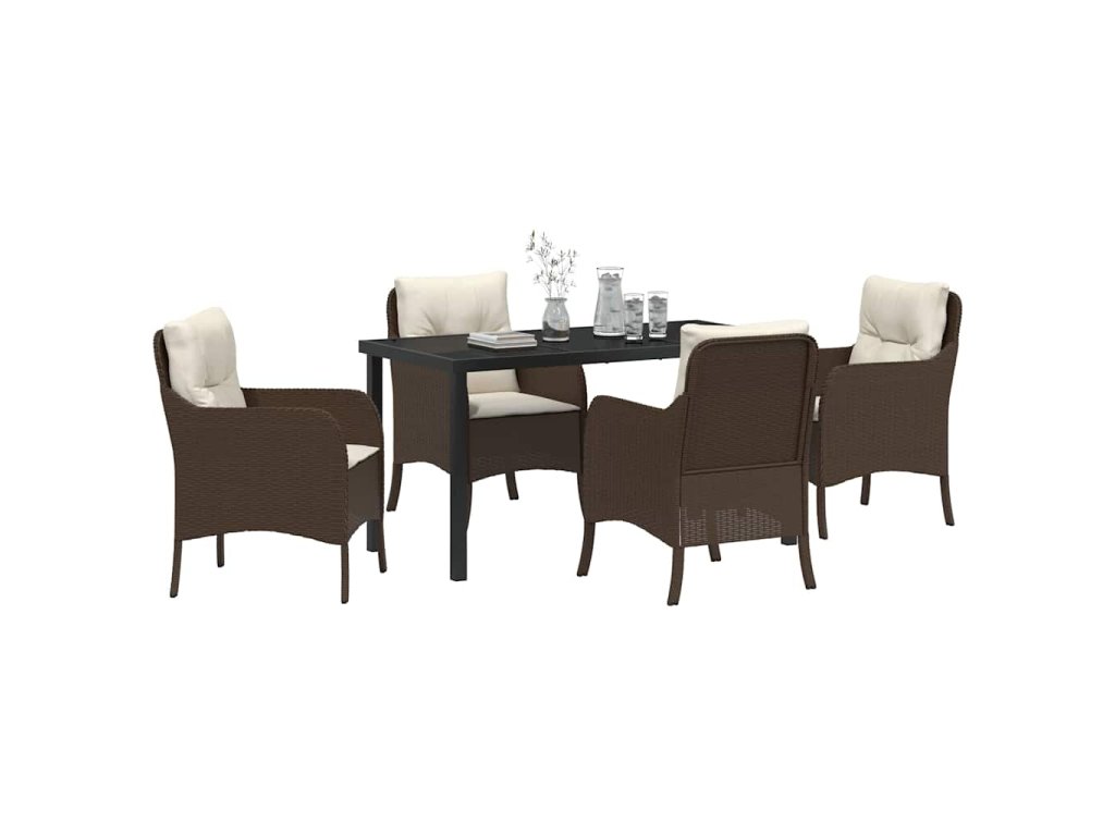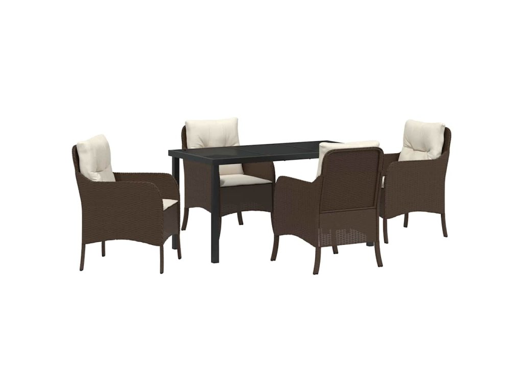 Zahradní jídelní souprava s polštářem 5 pcs Hnědá Poly ratan 3380157