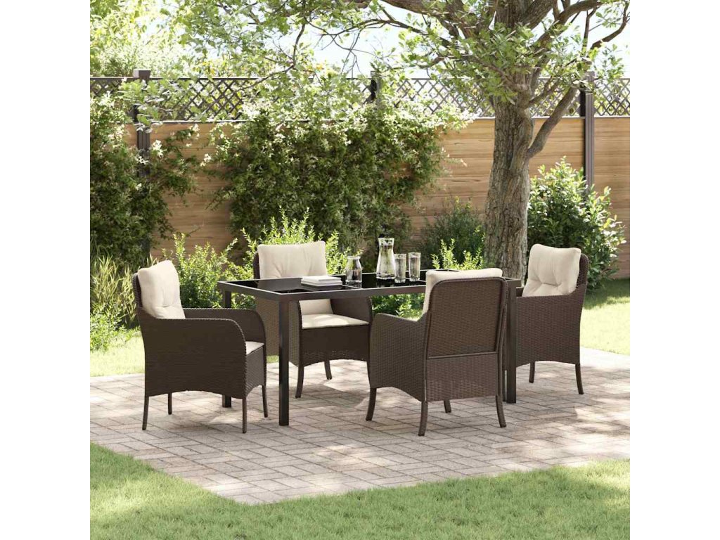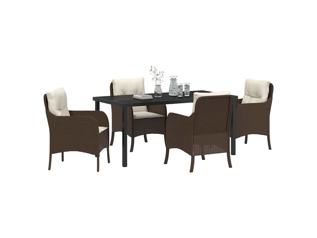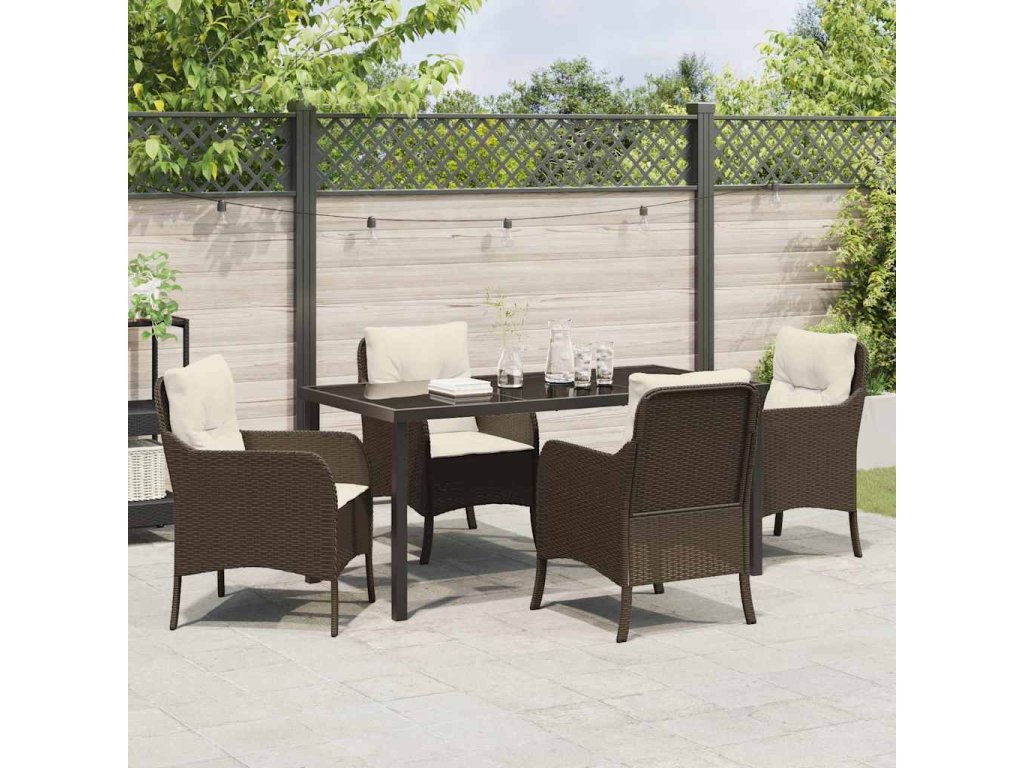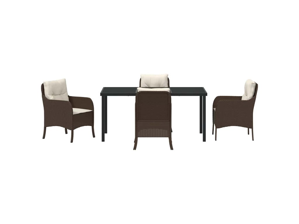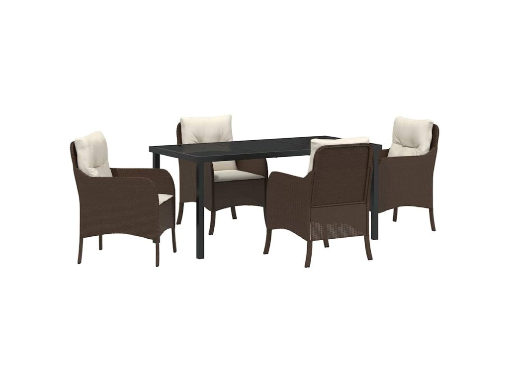 Zahradní jídelní souprava s polštářem 5 pcs Hnědá Poly ratan 3380158