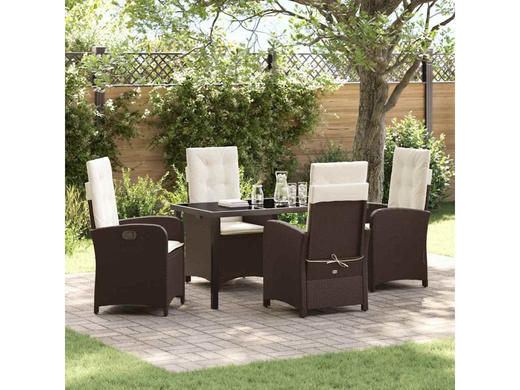 Zahradní jídelní souprava s polštářem 5 pcs Hnědá polyratan 3380269