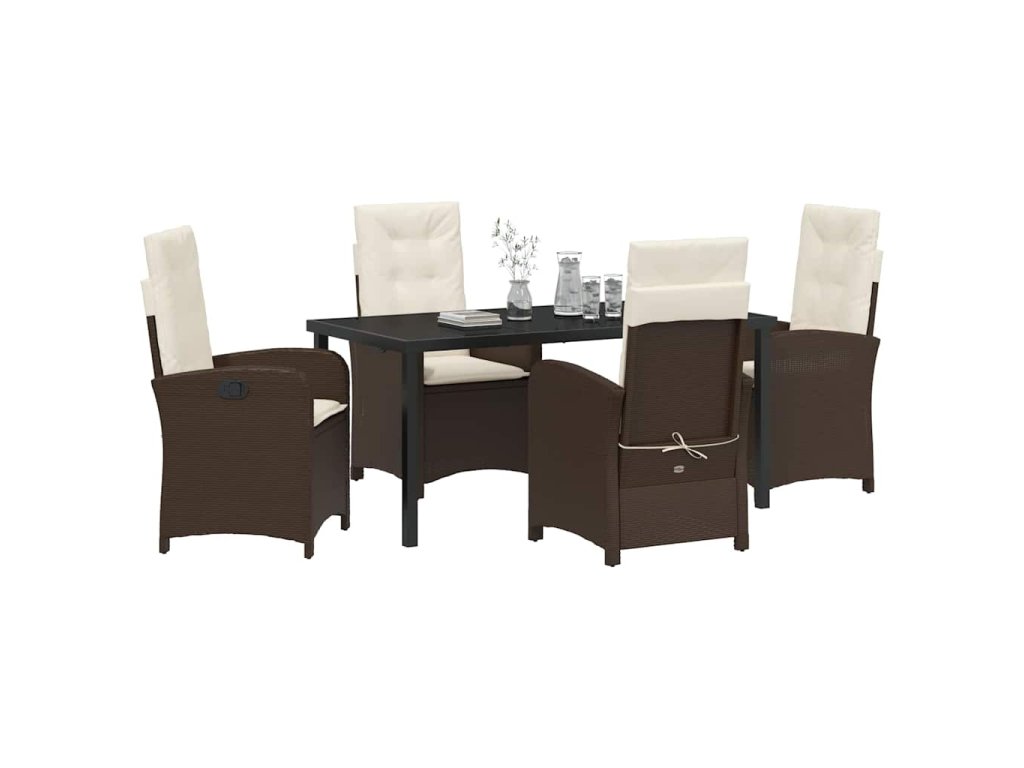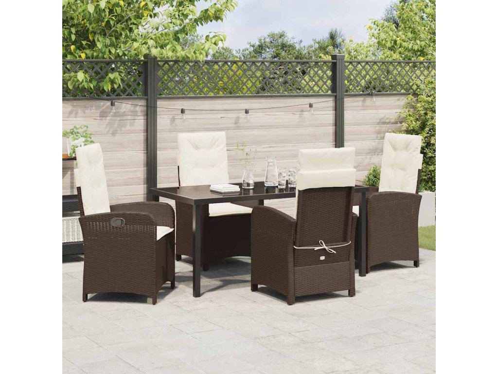Zahradní jídelní souprava s polštářem 5 pcs Hnědá polyratan 3380270