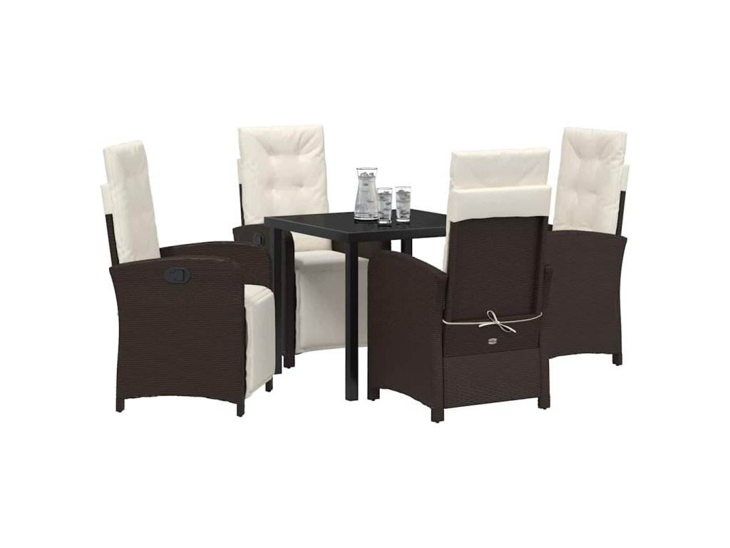 Zahradní jídelní souprava s polštářem 5 pcs Hnědá polyratan 3380317