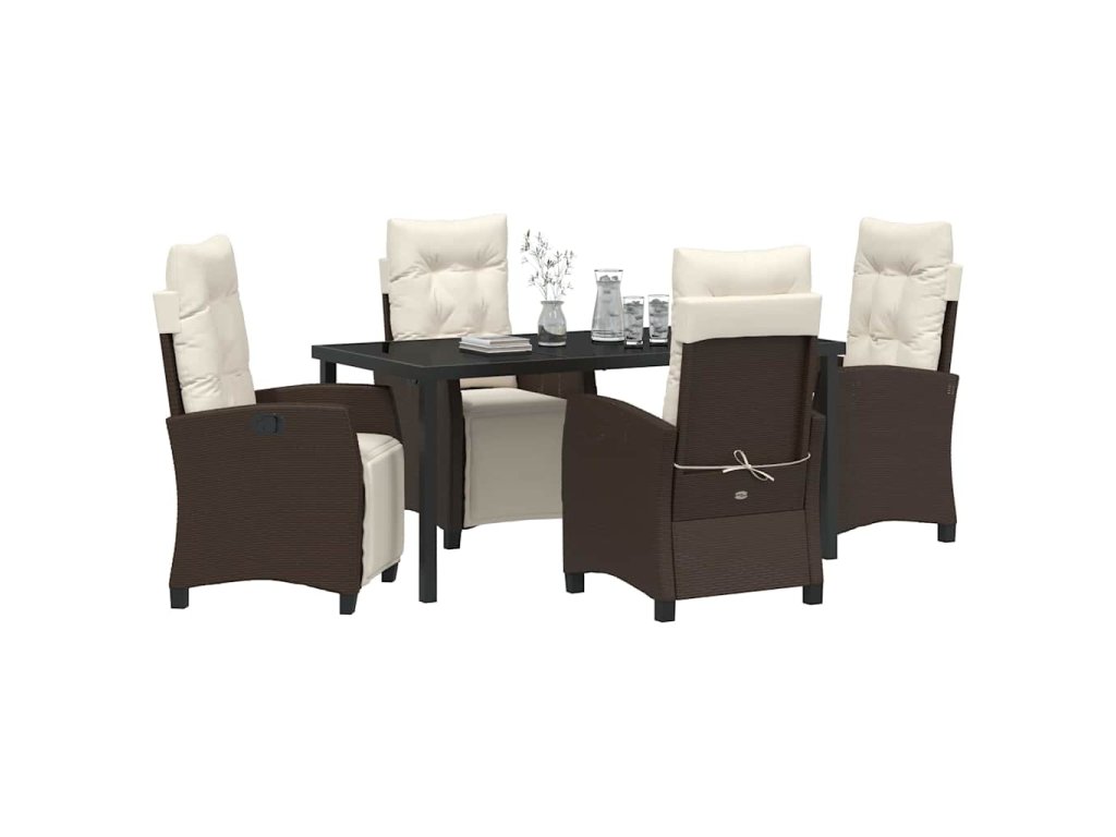 Zahradní jídelní souprava s polštářem 5 pcs Hnědá polyratan 3380431