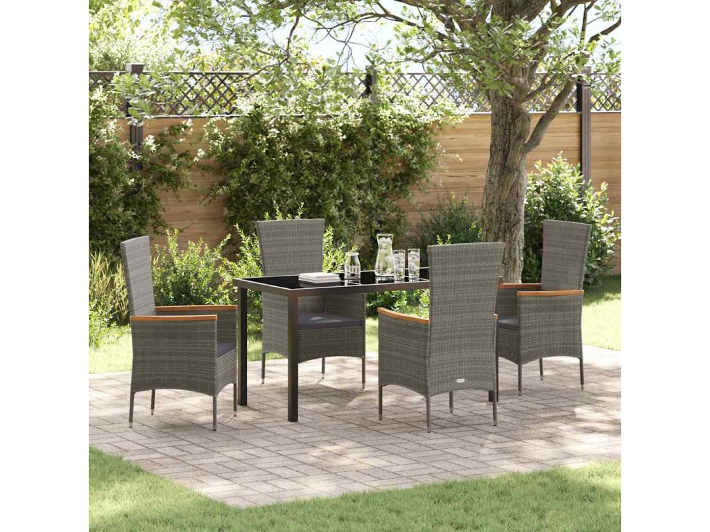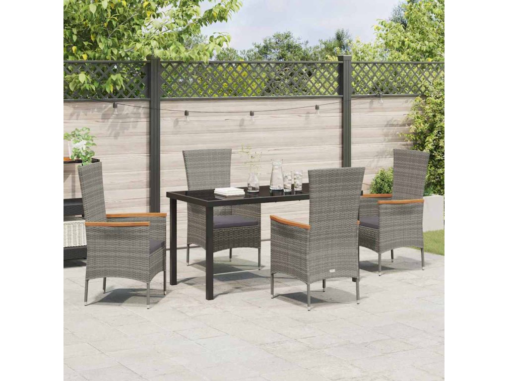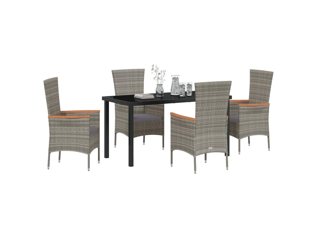 Zahradní jídelní souprava s polštářem 5 pcs Šedá Poly ratan 3379431