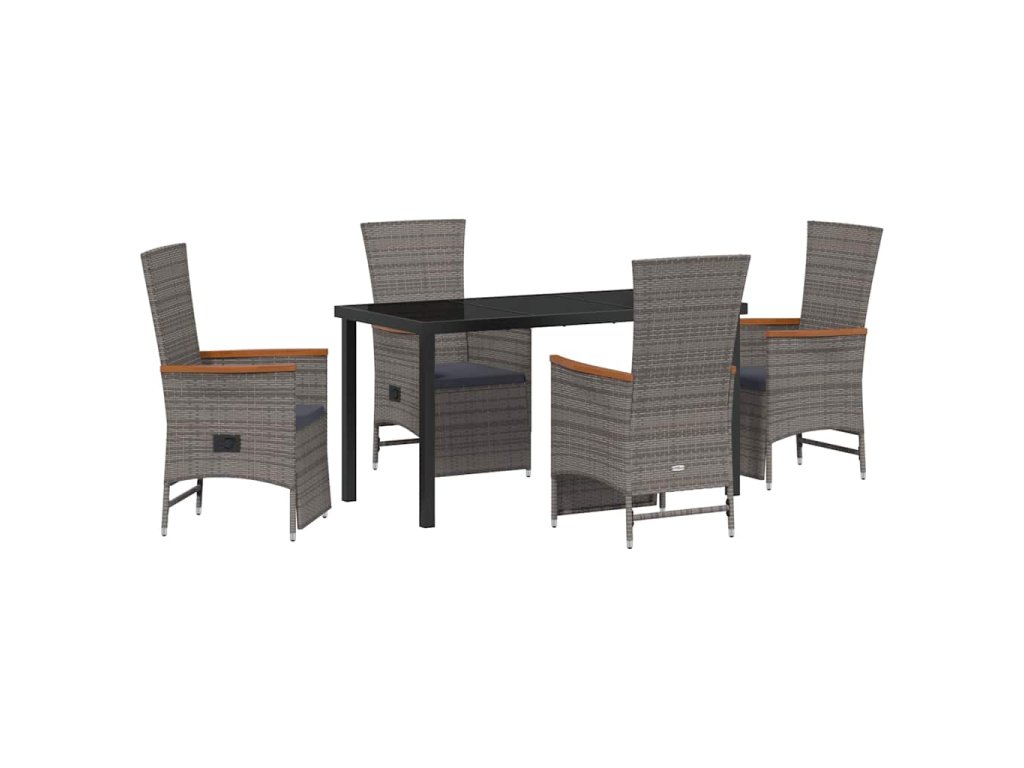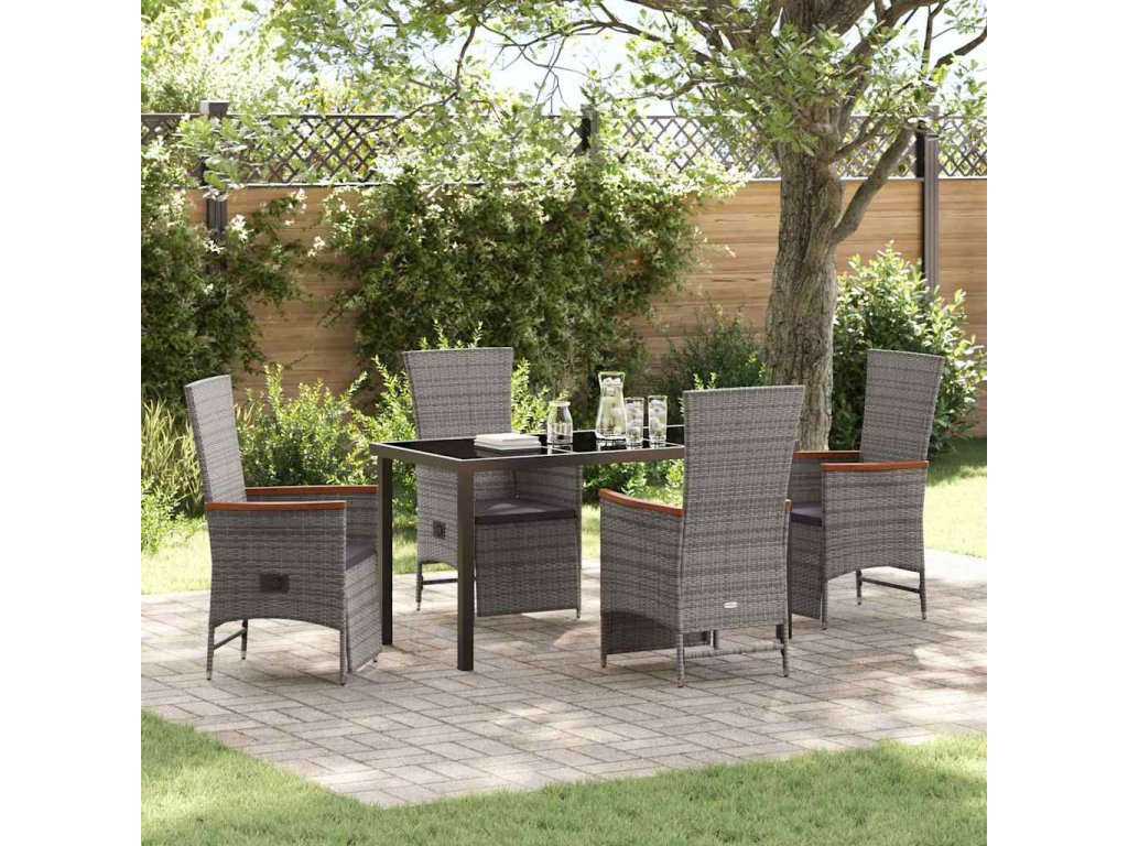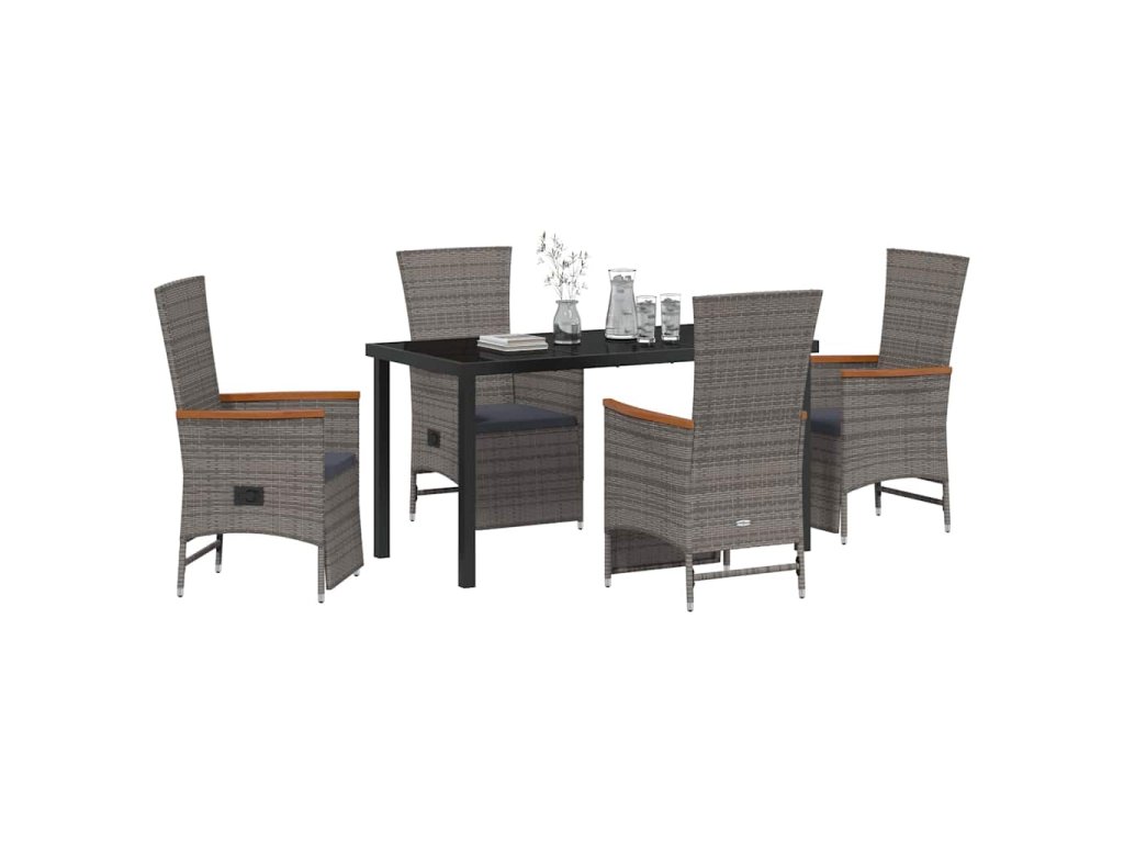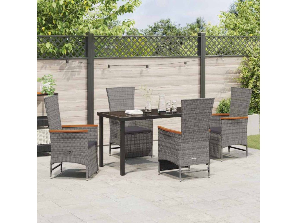 Zahradní jídelní souprava s polštářem 5 pcs Šedá Poly ratan 3379452