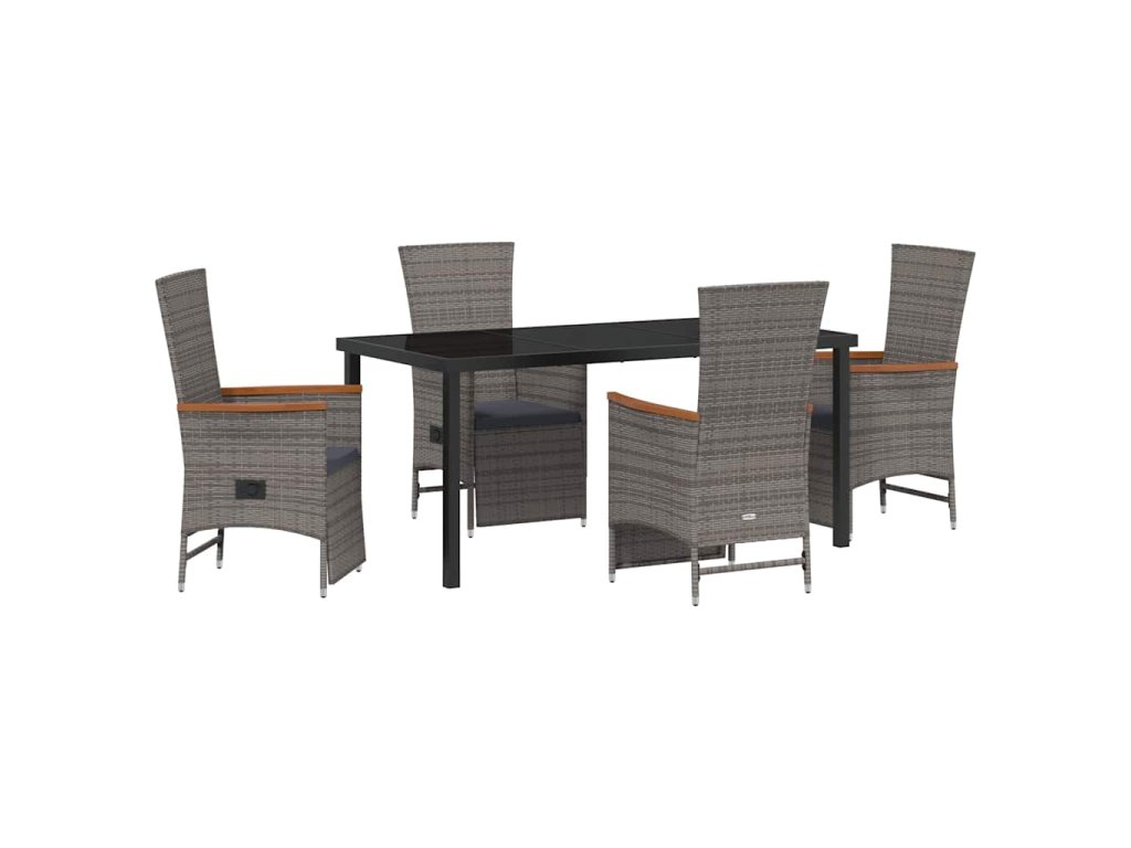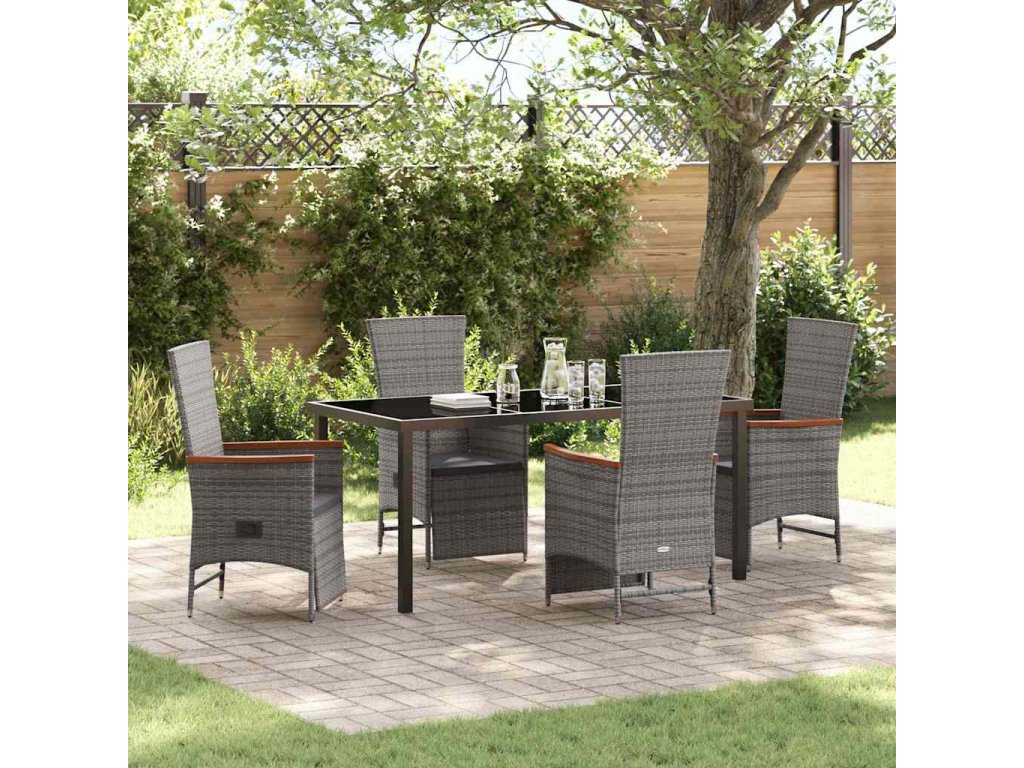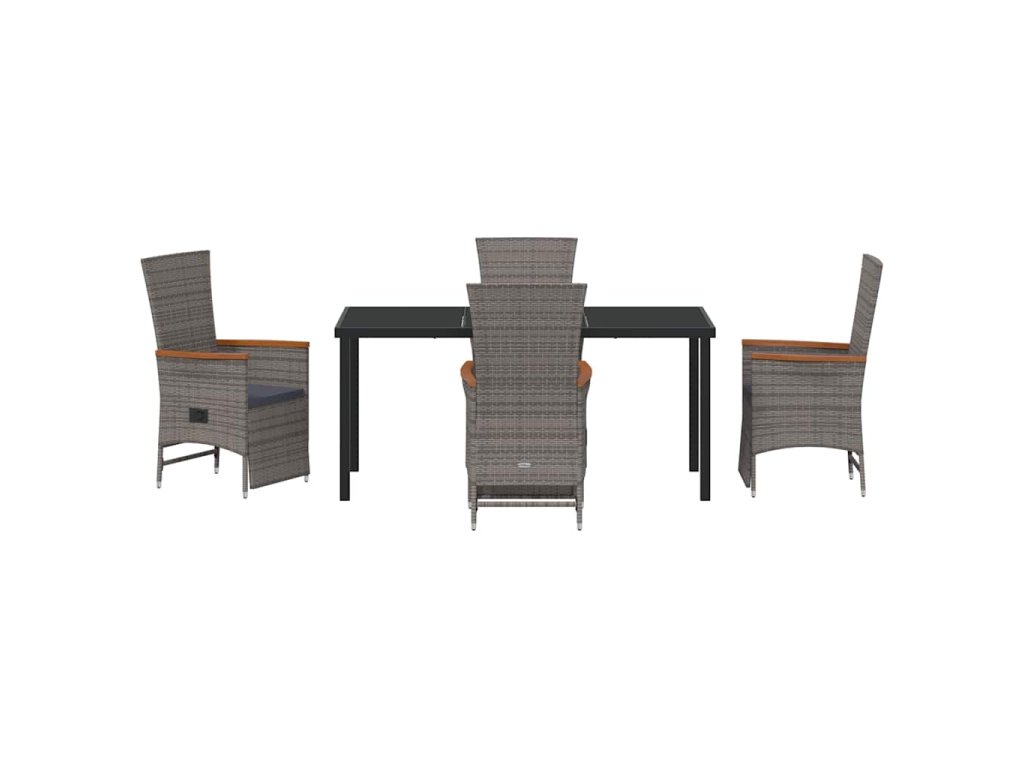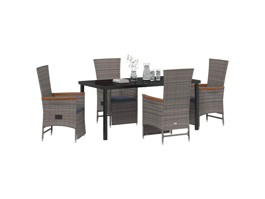 Zahradní jídelní souprava s polštářem 5 pcs Šedá Poly ratan 3379453