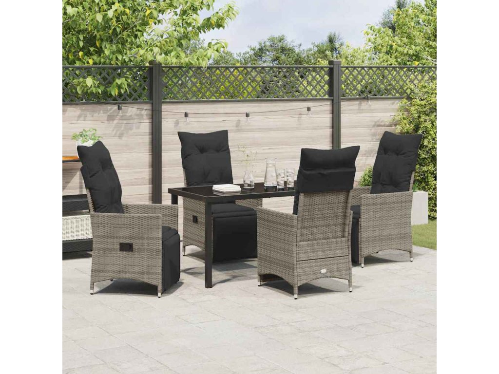Zahradní jídelní souprava s polštářem 5 pcs Šedá Poly ratan 3379578