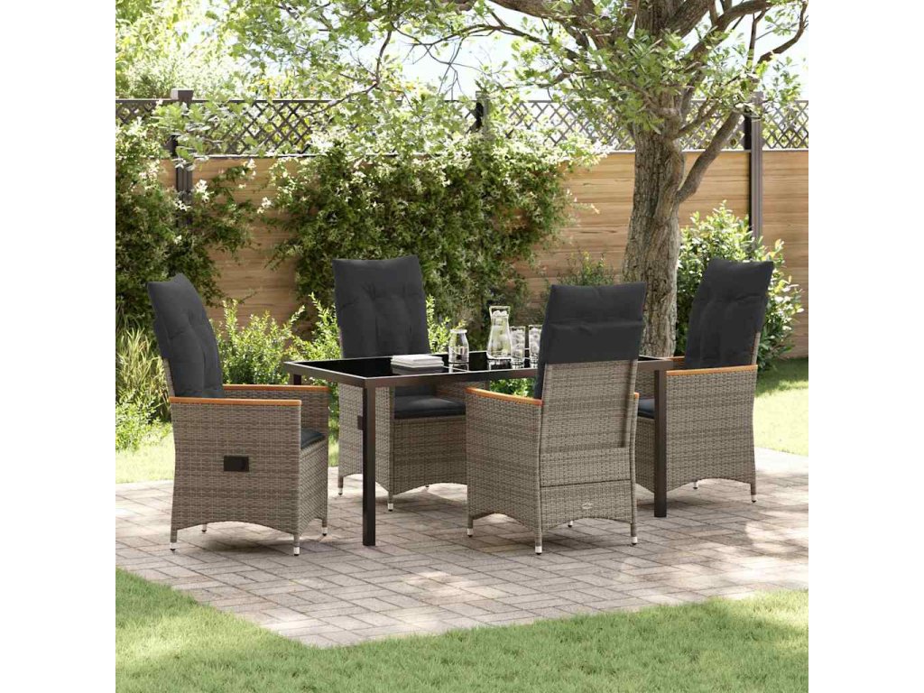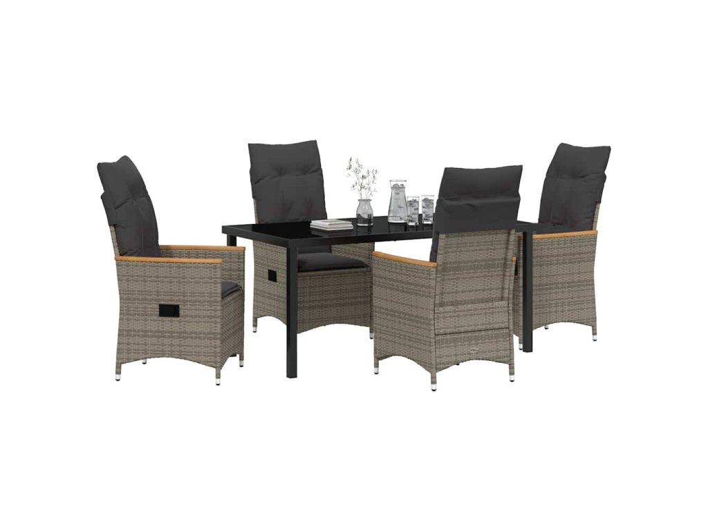 Zahradní jídelní souprava s polštářem 5 pcs Šedá Poly ratan 3379621