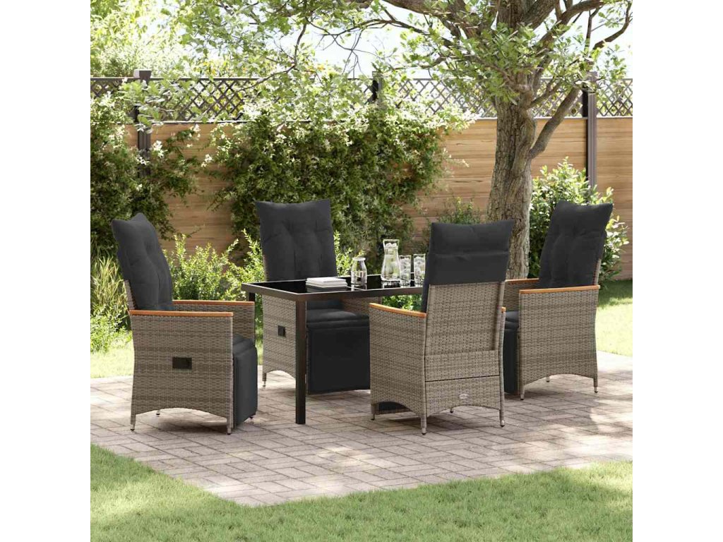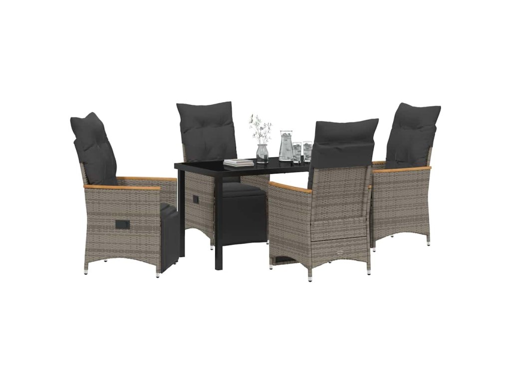 Zahradní jídelní souprava s polštářem 5 pcs Šedá Poly ratan 3379627