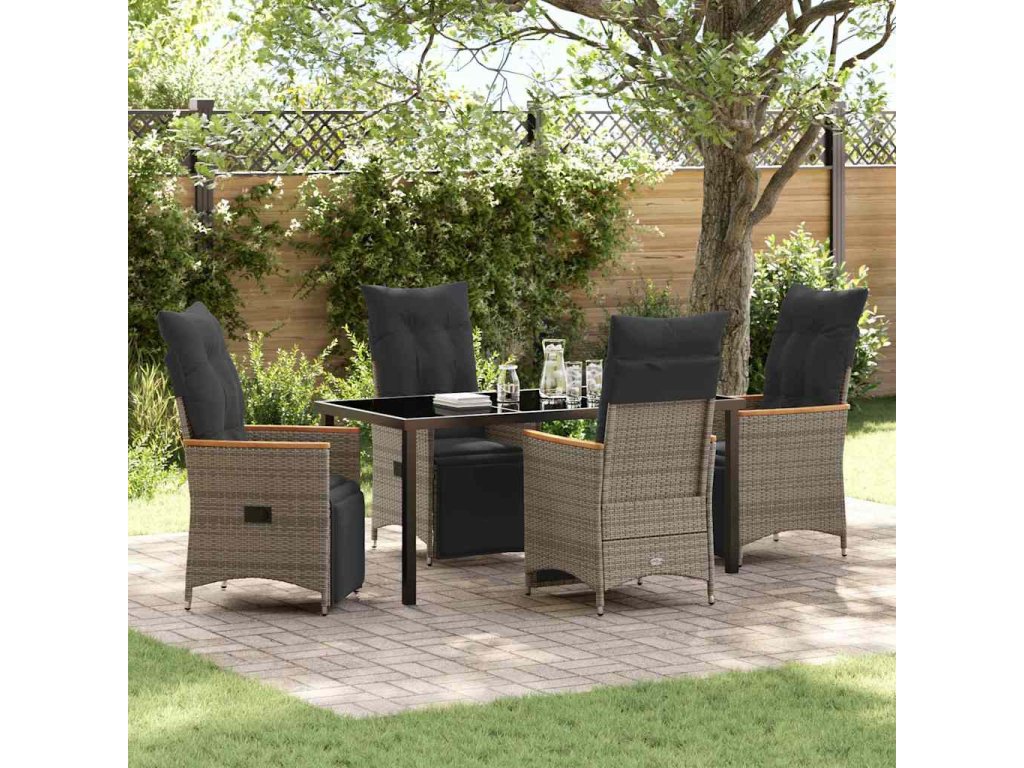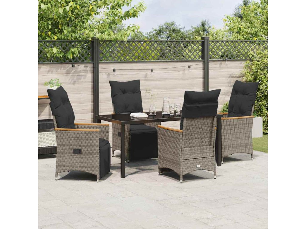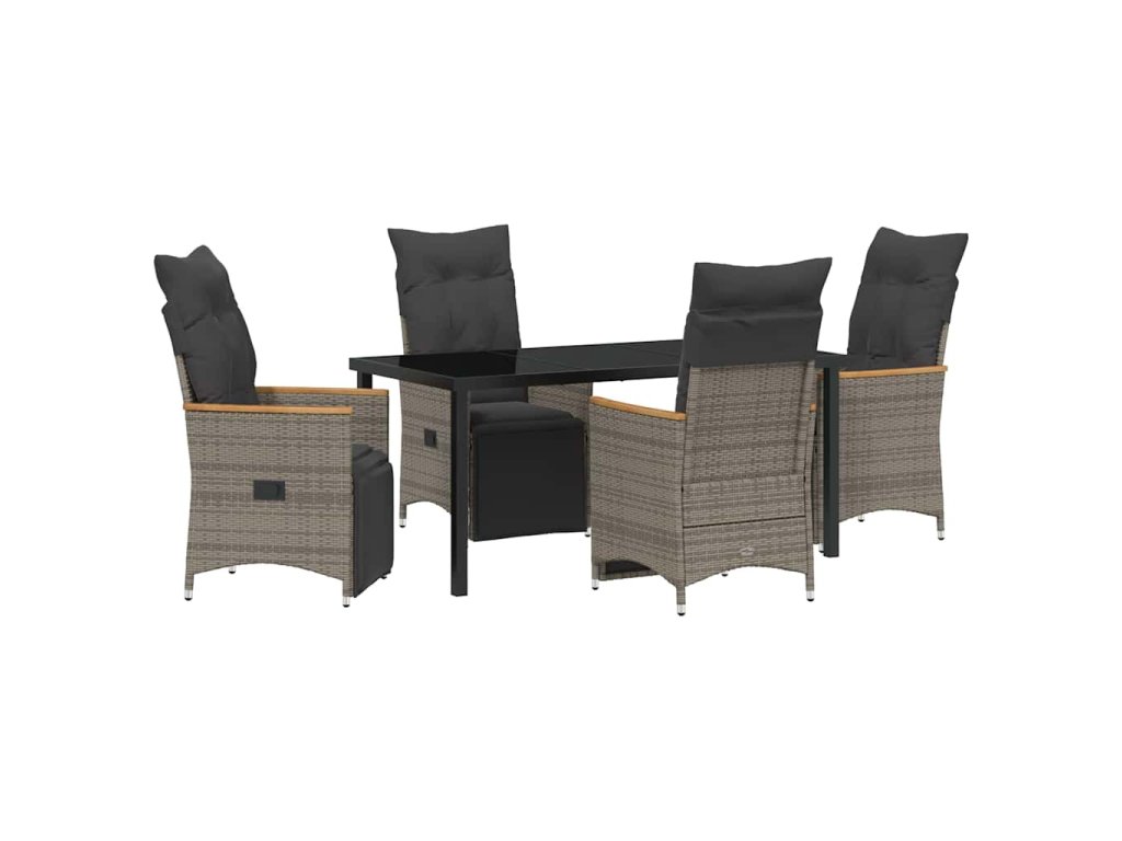 Zahradní jídelní souprava s polštářem 5 pcs Šedá Poly ratan 3379628