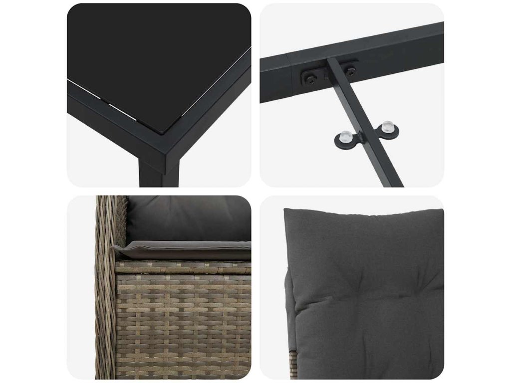 - Flexibilní použití: Ideální pro zahrady a terasy, tento set udělá dojem v každé venkovní oblasti. Skvělé pro rodinu, kamarády nebo páry, které chtějí relaxovat při slunných brunchích nebo pohodových večerech.
