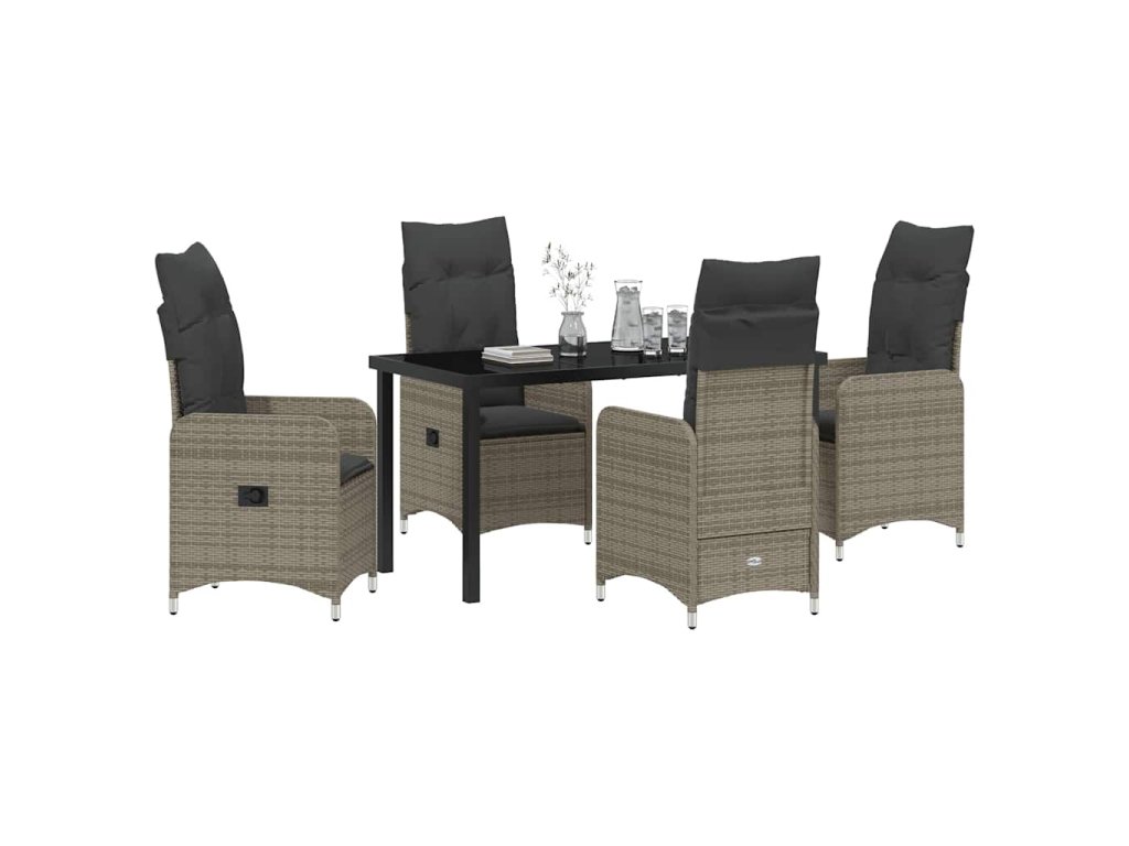 Zahradní jídelní souprava s polštářem 5 pcs Šedá Poly ratan 3379648