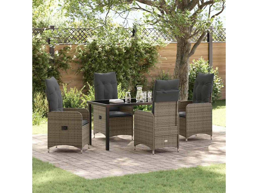 Tento venkovní skládací zahradní jídelní set je perfektní mix moderního stylu a funkčnosti, takže promění každou zahradu nebo terasu v něco speciálního. Se svou stylovou tkanou texturou je fakt ideální pro ty, co chtějí estetiku i pohodlí v venkovním nábytku.