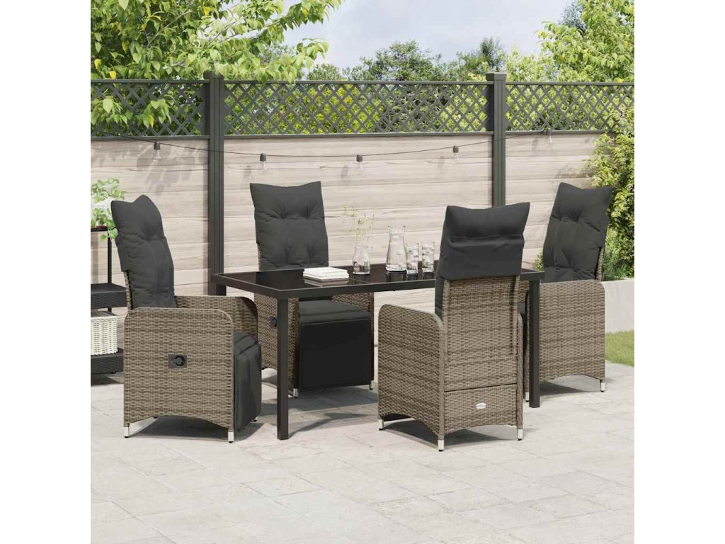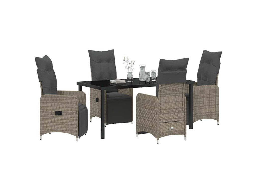 Zahradní jídelní souprava s polštářem 5 pcs Šedá Poly ratan 3379677
