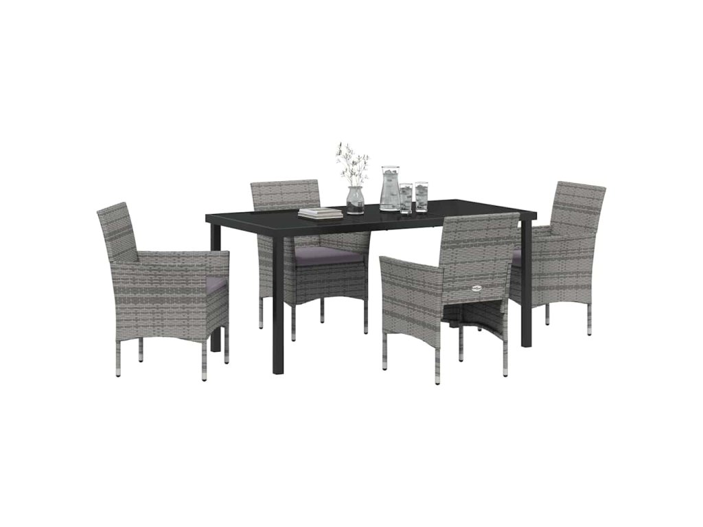 Zahradní jídelní souprava s polštářem 5 pcs Šedá Poly ratan 3379733
