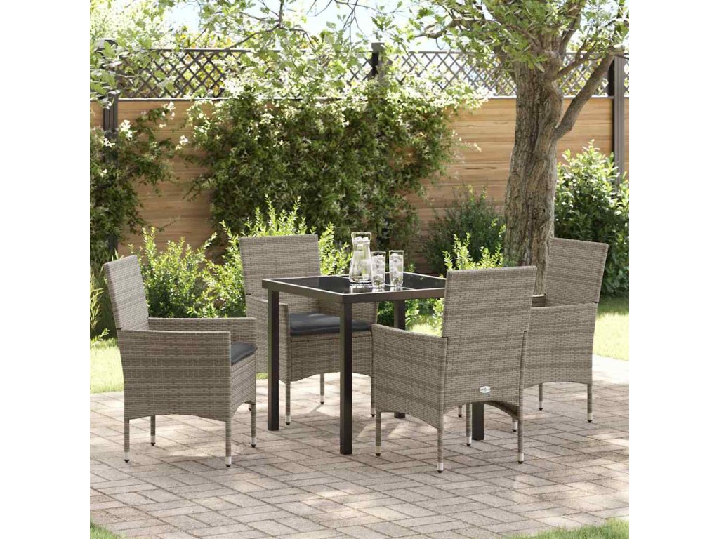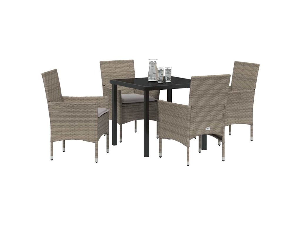 Zahradní jídelní souprava s polštářem 5 pcs Šedá Poly ratan 3379787