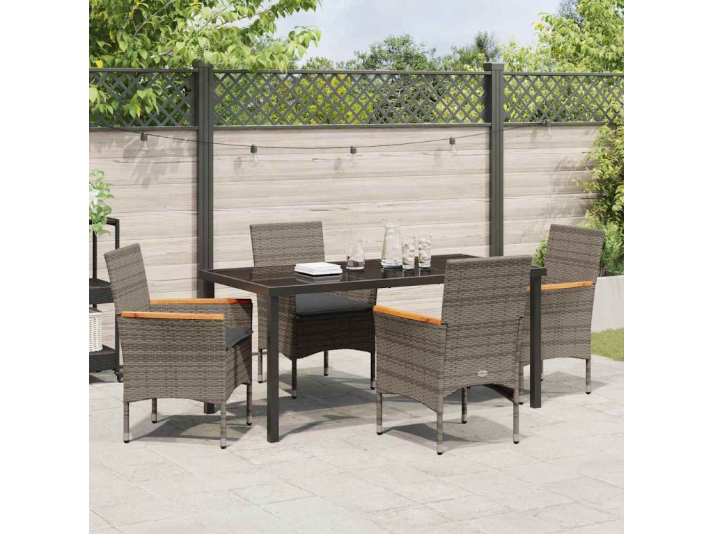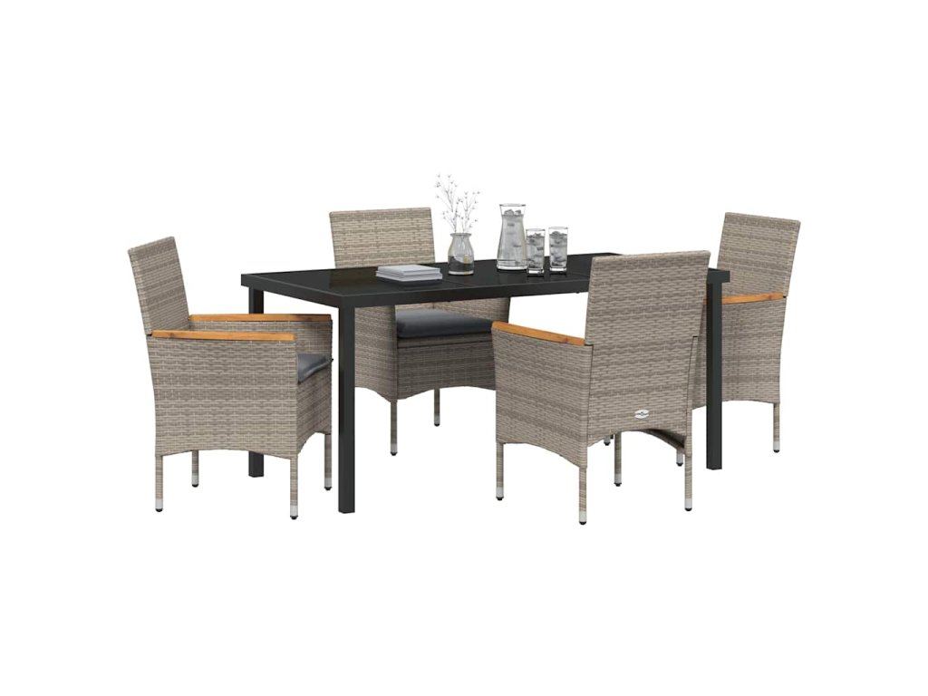 Zahradní jídelní souprava s polštářem 5 pcs Šedá Poly ratan 3379852