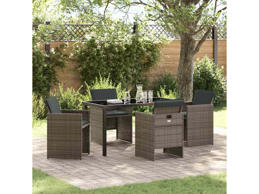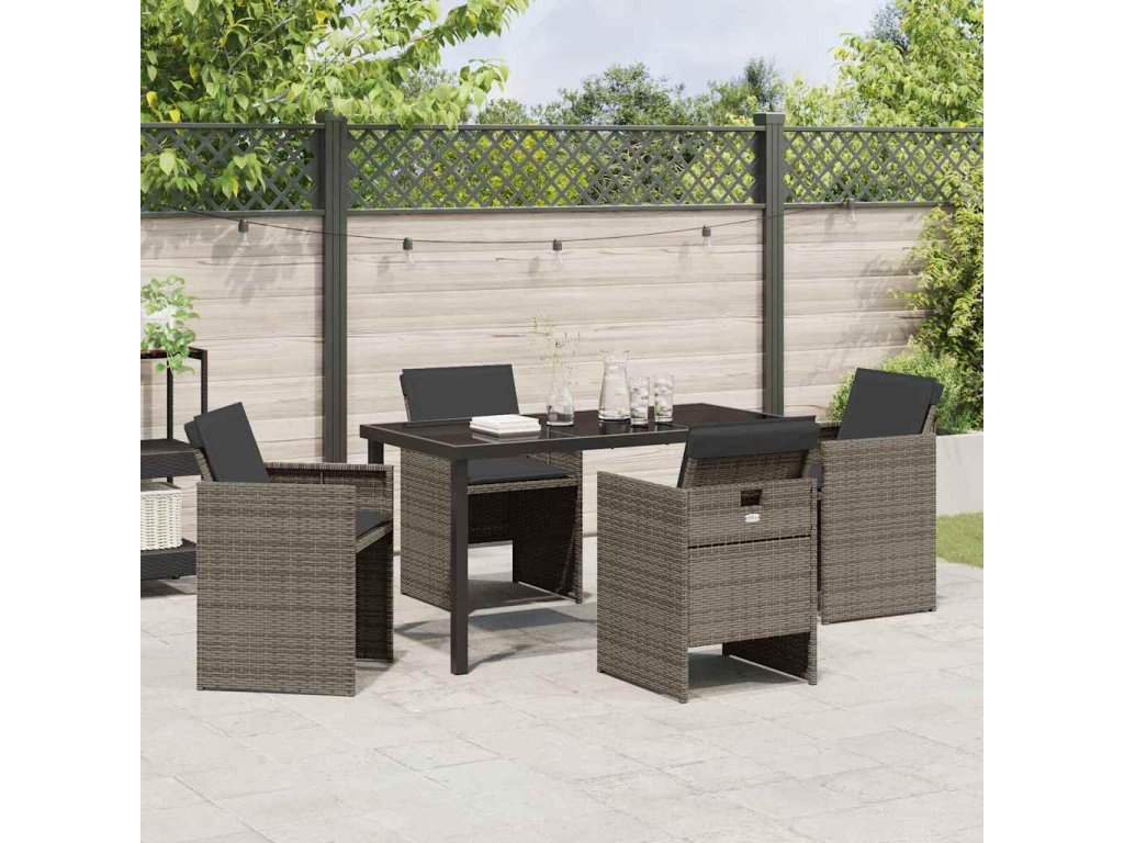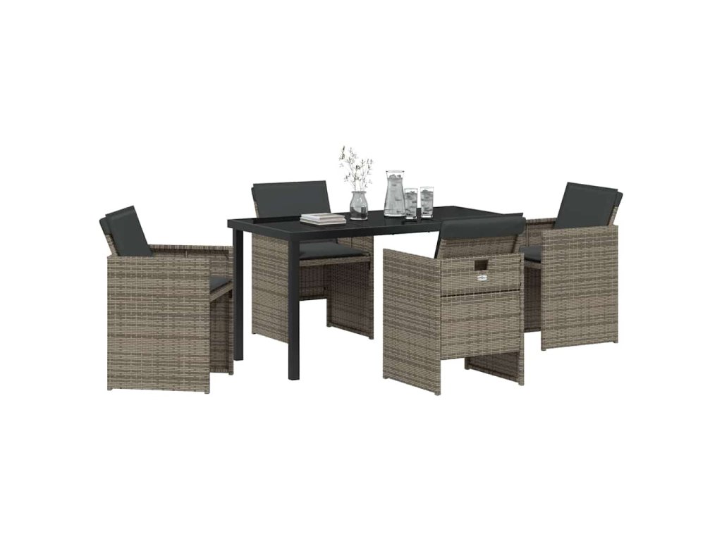 Zahradní jídelní souprava s polštářem 5 pcs Šedá Poly ratan 3379949