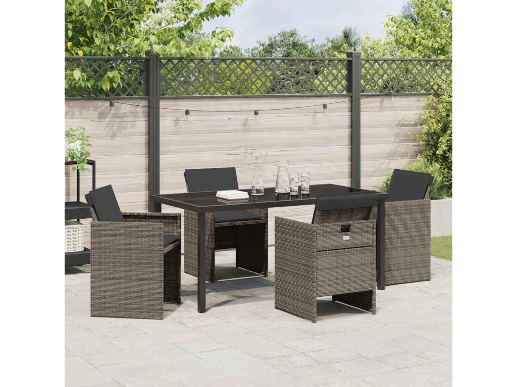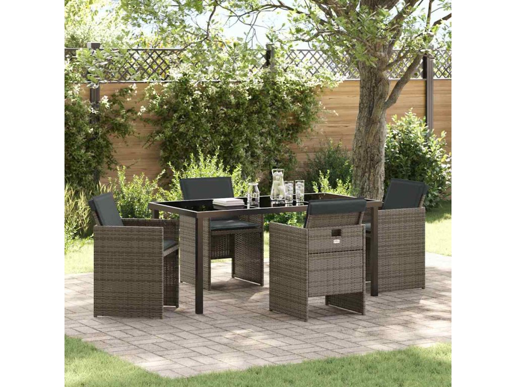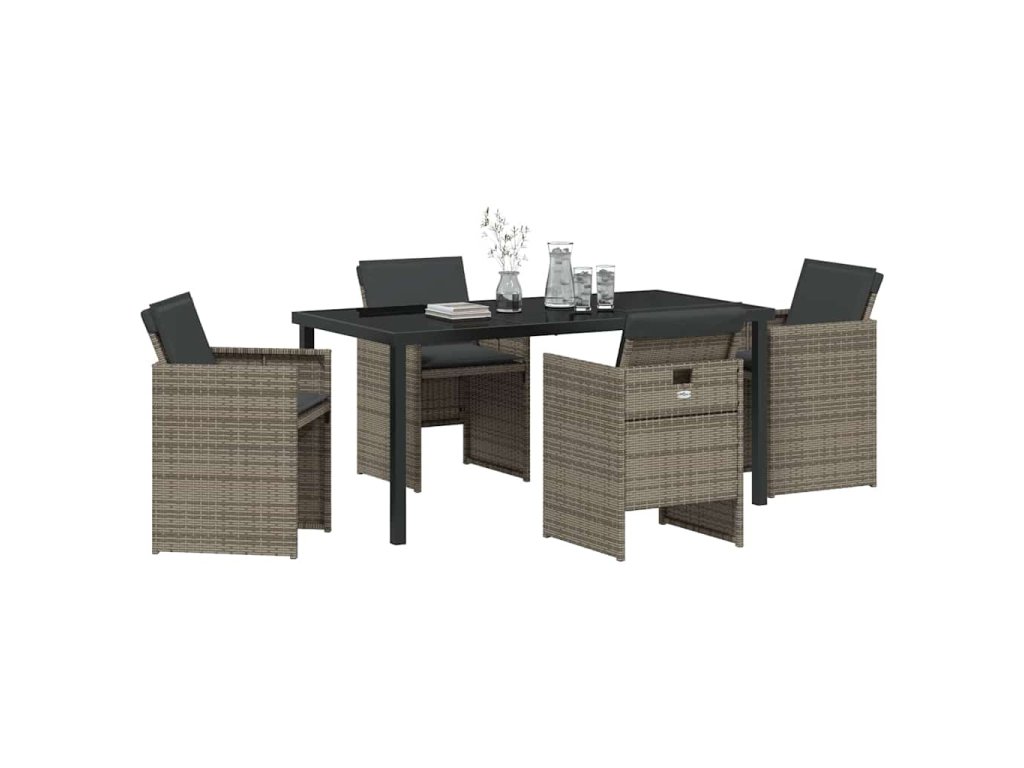 Zahradní jídelní souprava s polštářem 5 pcs Šedá Poly ratan 3379950