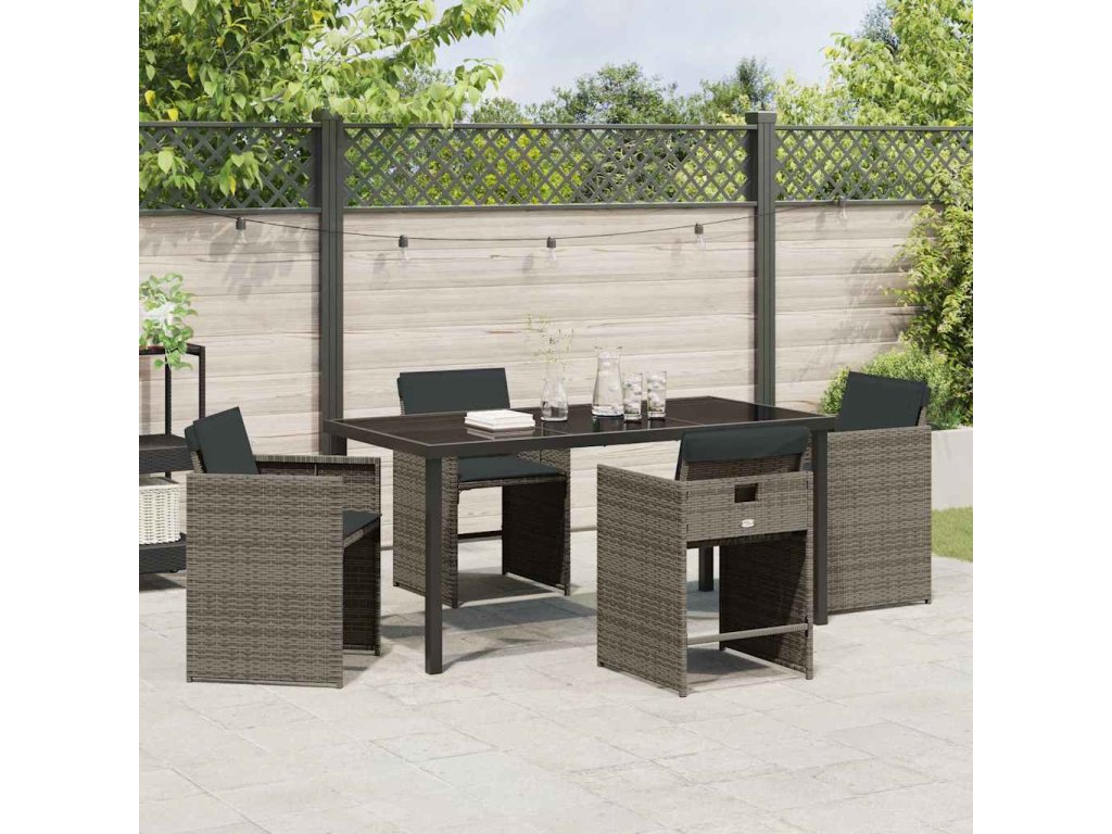 Zahradní jídelní souprava s polštářem 5 pcs Šedá Poly ratan 3379982