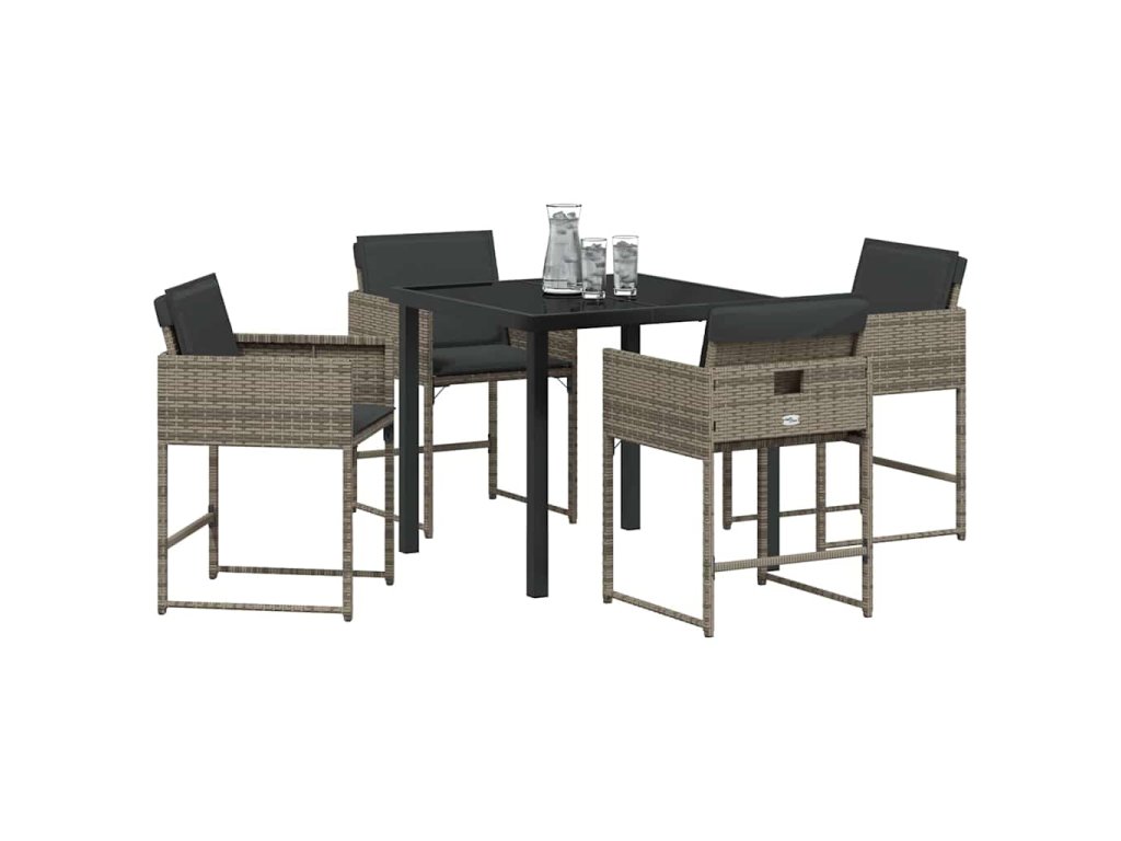 Zahradní jídelní souprava s polštářem 5 pcs Šedá Poly ratan 3380012
