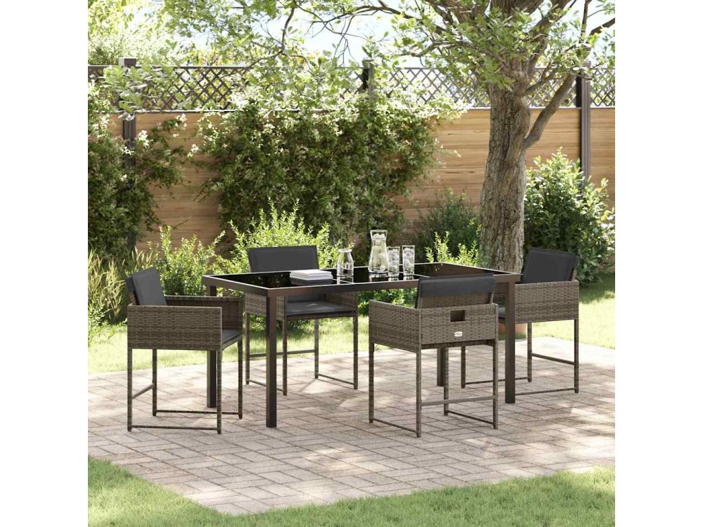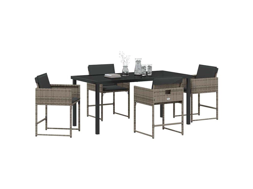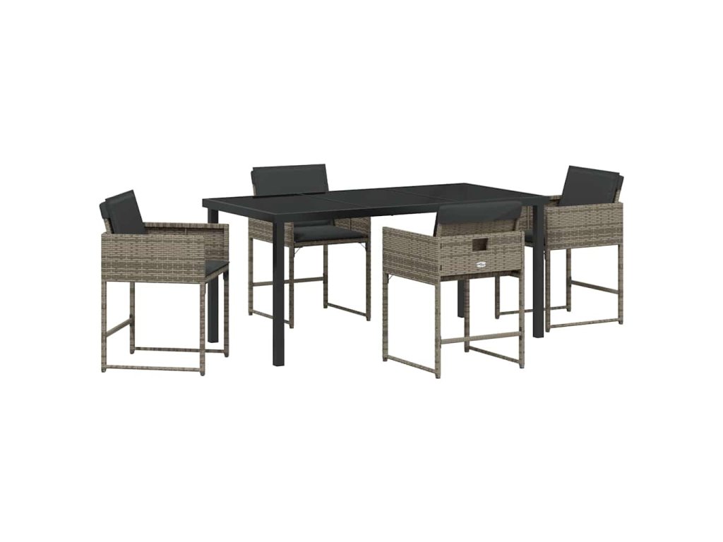 Zahradní jídelní souprava s polštářem 5 pcs Šedá Poly ratan 3380014