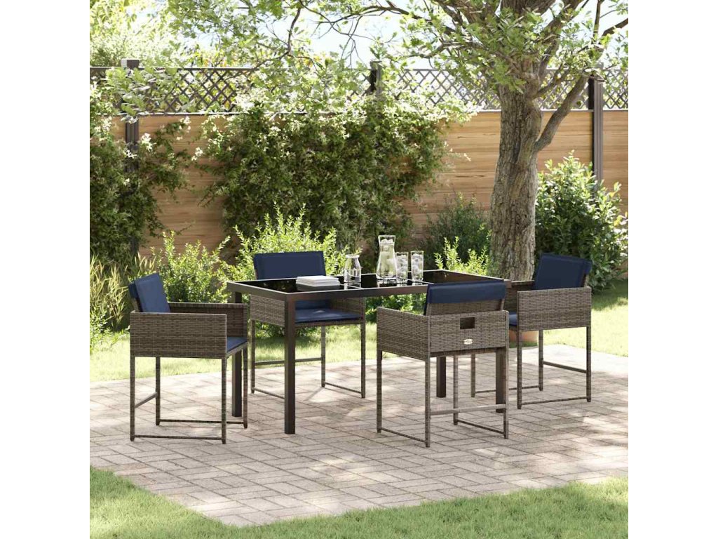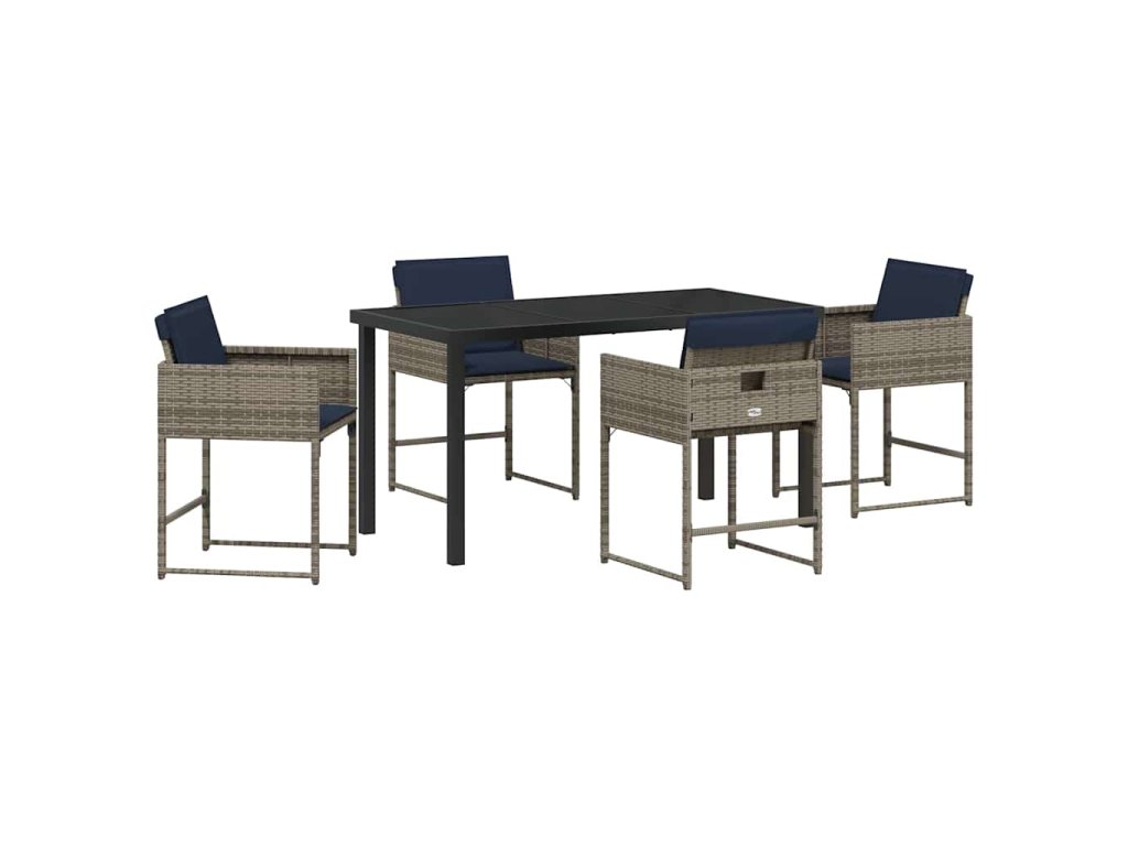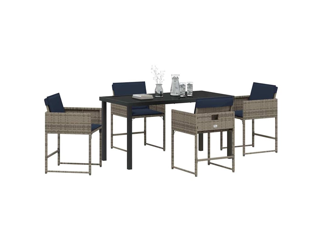 Zahradní jídelní souprava s polštářem 5 pcs Šedá Poly ratan 3380033