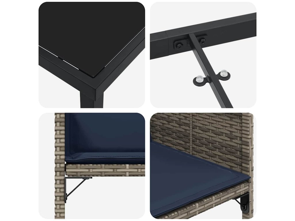 - Různorodé využití: Perfektní pro zahrady, balkony a terasy; tenhle set je dost univerzální pro společenské akce nebo klidný odpočinek. Elegantní design snadno zapadne do různých uspořádání a prostorových potřeb.
